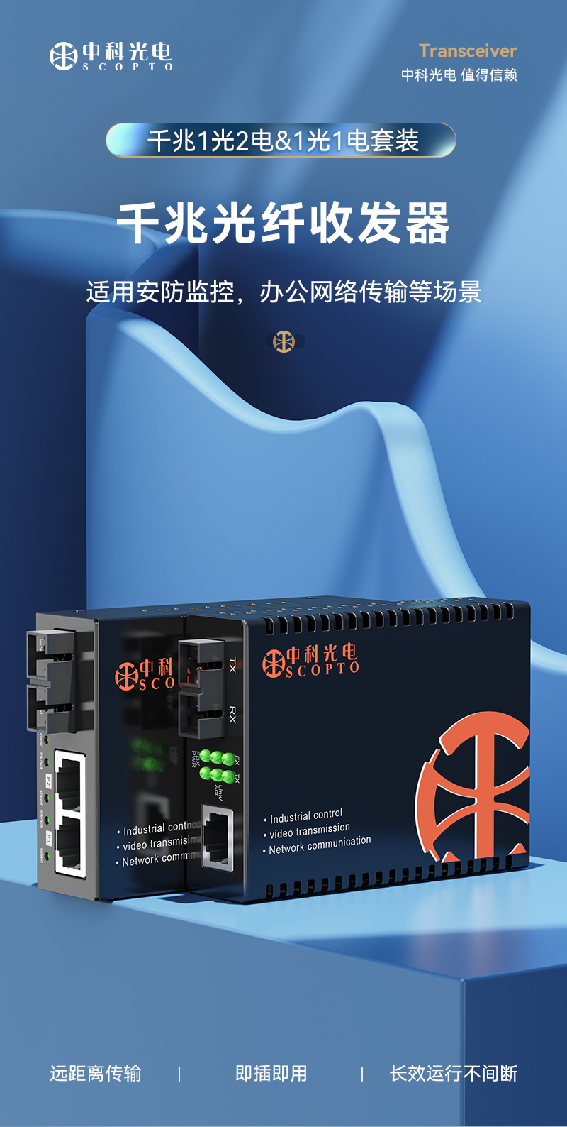 中科光電 千兆單模雙纖光纖收發(fā)器 光電轉換器 1光2電+1光1電 雙芯光纖轉網線ZK-GE-102-10KM ZK-GE-10KM一對