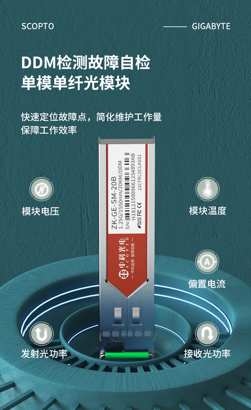 中科光電 千兆光模塊 SFP光纖模塊1.25G千兆單模單纖20KM LC接口一對 適用各品牌服務(wù)器交換機(jī)ZK-GE-SM-20AB