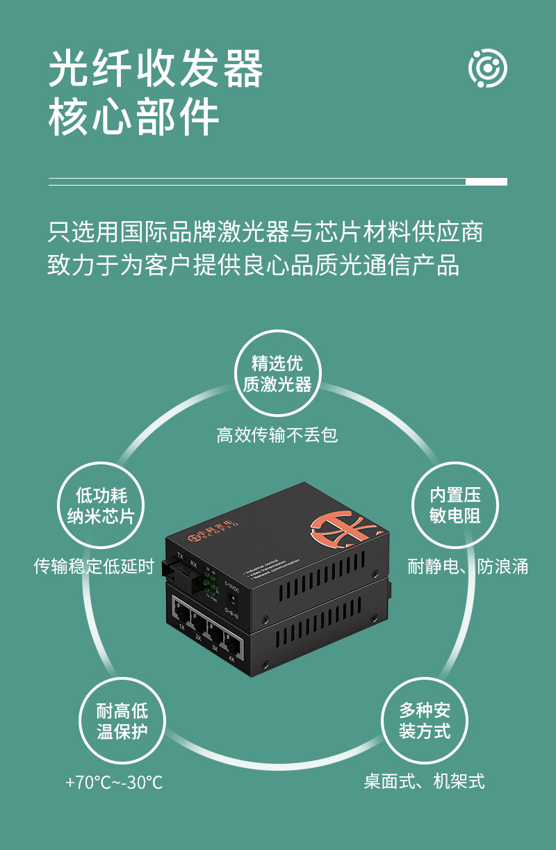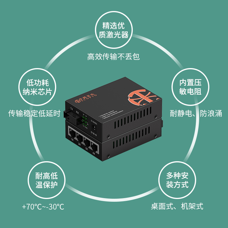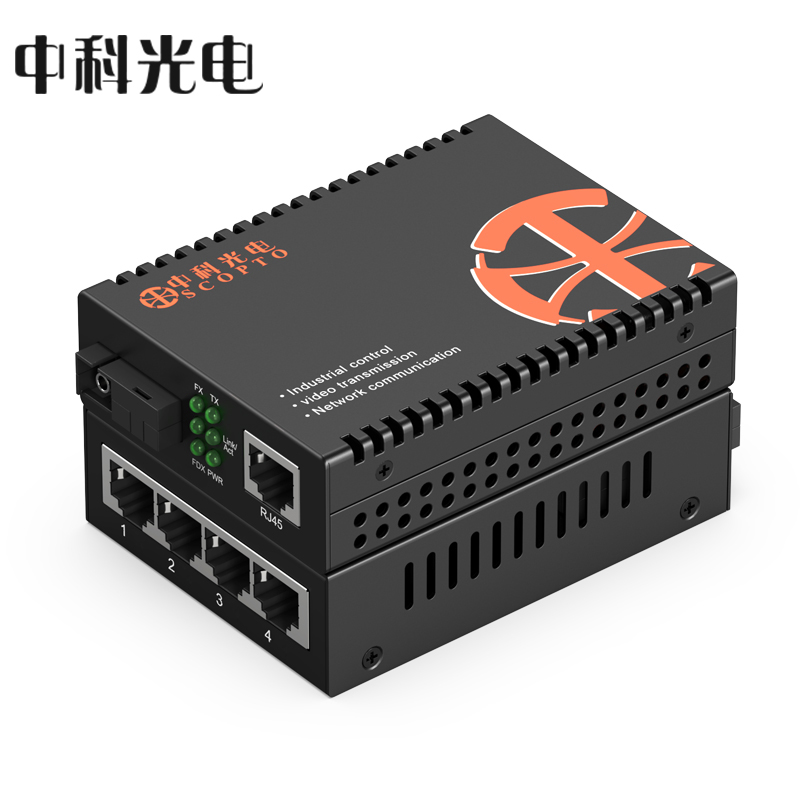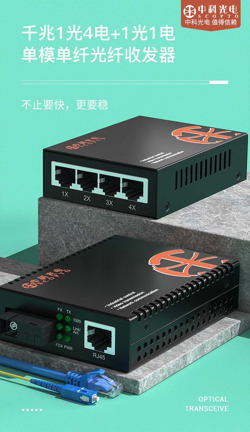 中科光電 光纖收發(fā)器千兆 光電轉(zhuǎn)換器 千兆單模單纖 1光4電+1光1電一對 SC接口 3公里 ZK-GE-3A/4GE ZK-GE-3B