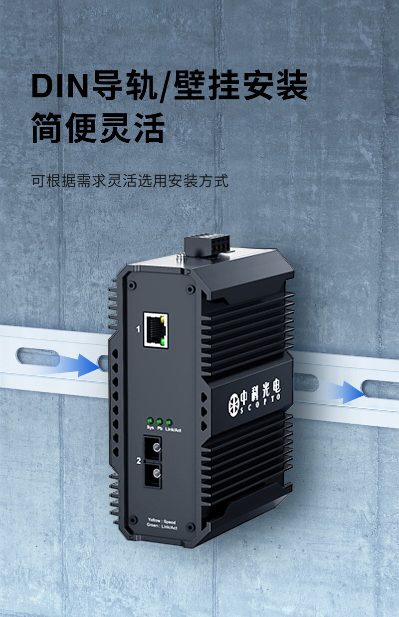 中科光電 工業(yè)級光纖收發(fā)器 百兆多模雙纖1光1電轉(zhuǎn)換器以太網(wǎng)交換機(jī)24V48V導(dǎo)軌式SC接口