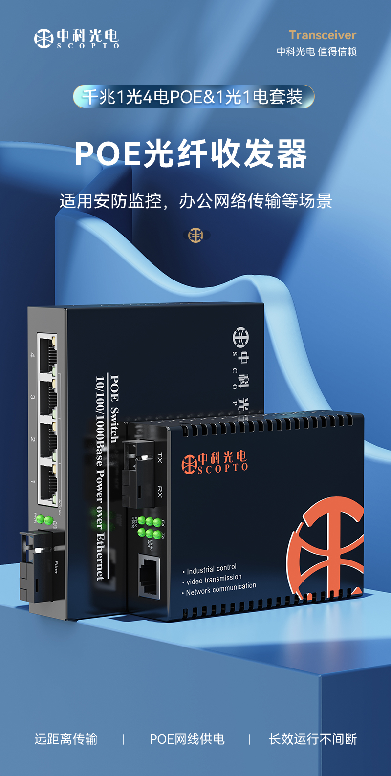 中科光電 POE光纖收發(fā)器 千兆單模單纖 1光4電+1光1電 光電轉換器 網絡光端機ZK-GE/104P-10A ZK-GE-10B一對
