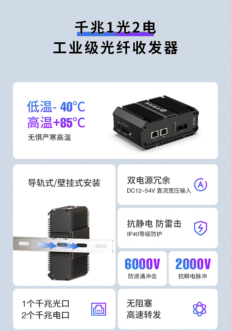 中科光電 工業(yè)級(jí)光纖收發(fā)器 千兆多模雙纖1光2電轉(zhuǎn)換器以太網(wǎng)交換機(jī)24V48V導(dǎo)軌式SC接口