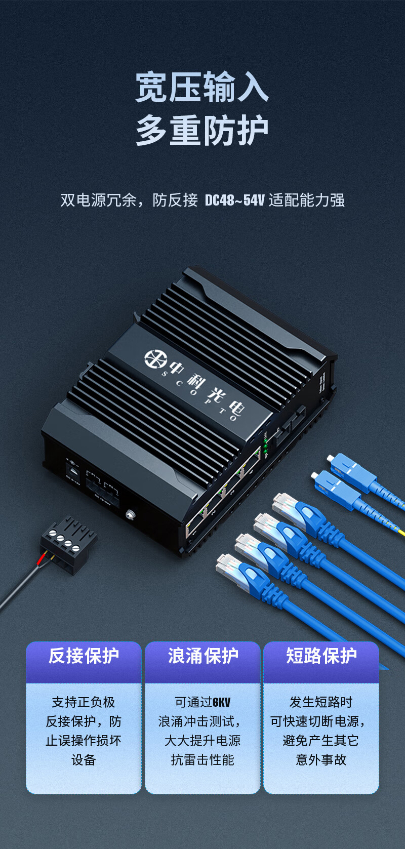 中科光電 POE工業(yè)級光纖收發(fā)器 百兆單模雙纖1光4電轉(zhuǎn)換器以太網(wǎng)交換機48V導(dǎo)軌式 SC接口