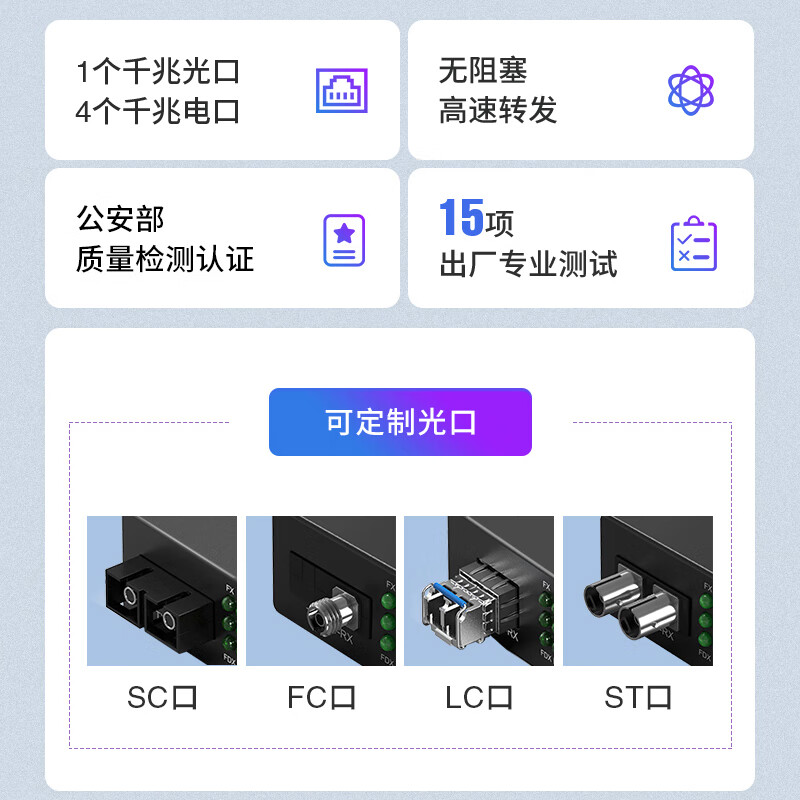 中科光電 工業(yè)級光纖收發(fā)器 千兆單模雙纖1光4電轉(zhuǎn)換器以太網(wǎng)交換機(jī)24V48V導(dǎo)軌式SC接口