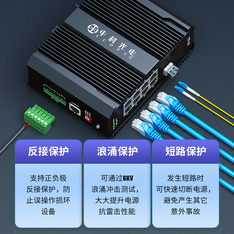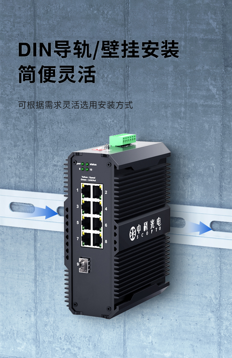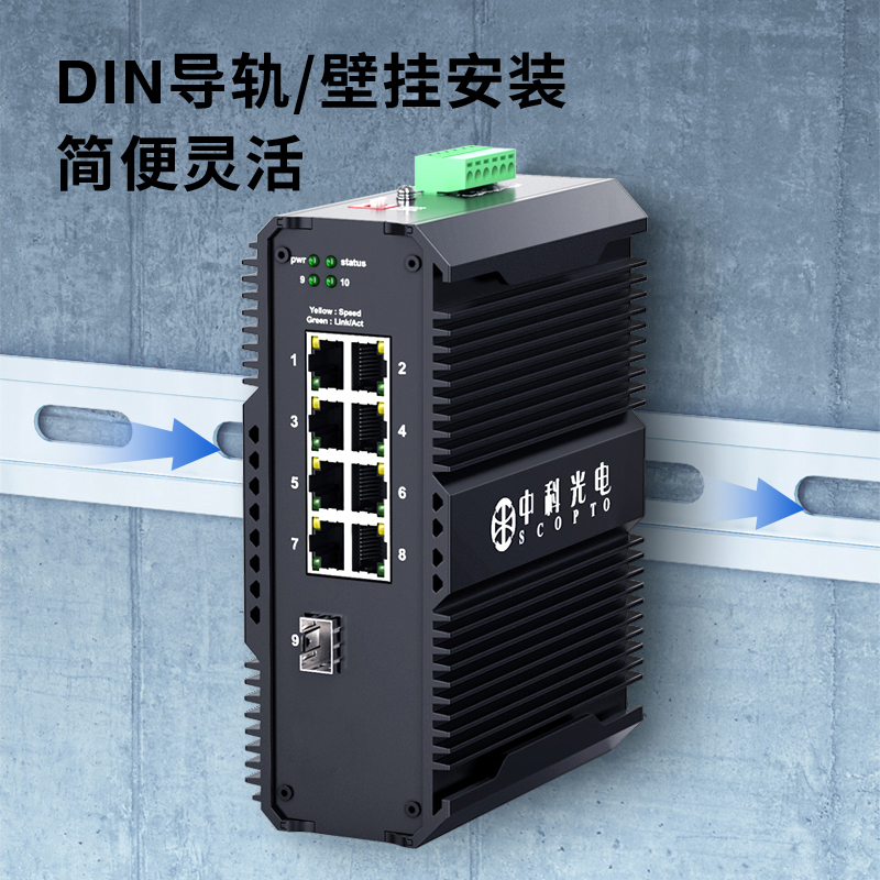中科光電 工業(yè)級以太網(wǎng)光纖交換機 千兆1光8電口 光電轉(zhuǎn)換器12V導軌式1.25G光纖收發(fā)器