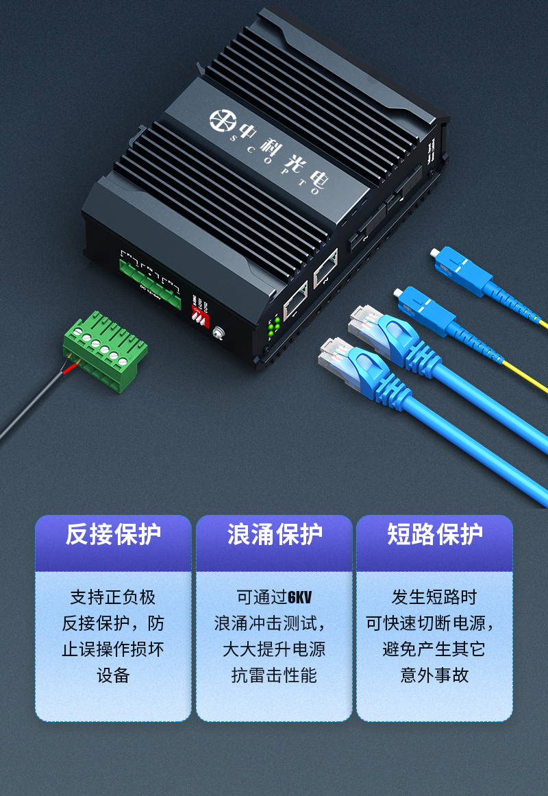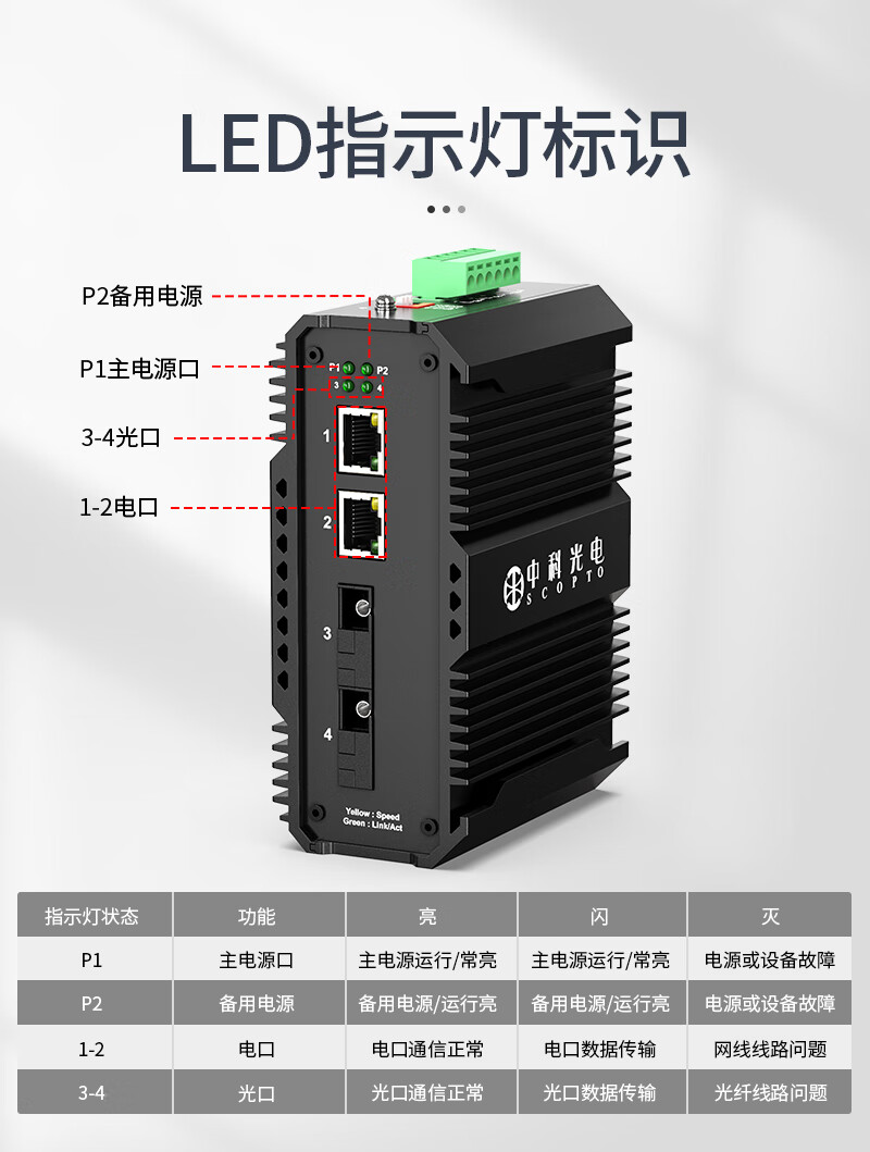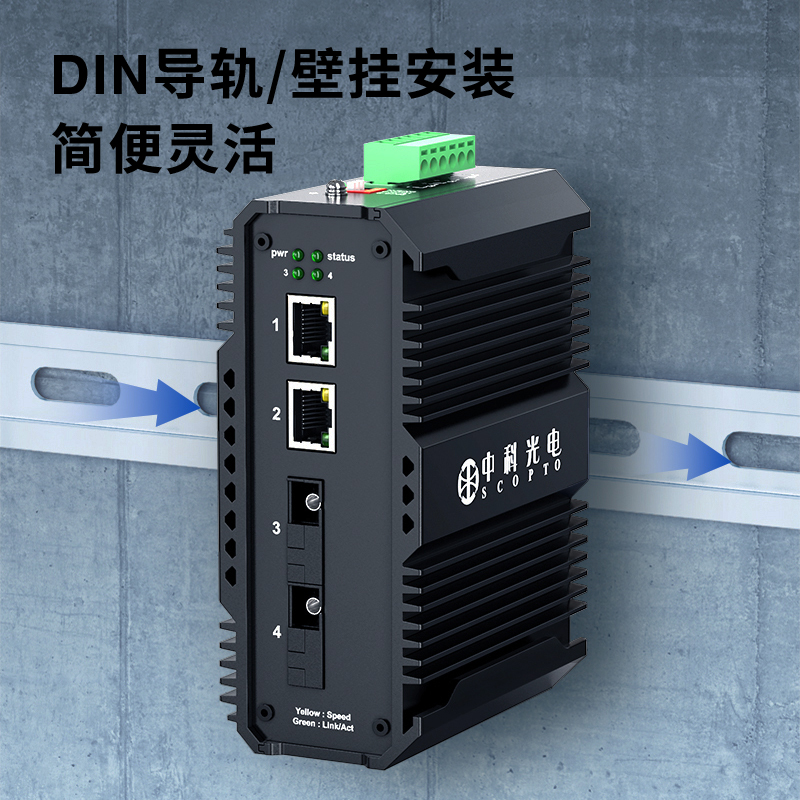 中科光電 工業(yè)級(jí)光纖收發(fā)器 千兆單模單纖2光2電轉(zhuǎn)換器以太網(wǎng)交換機(jī)24V48V導(dǎo)軌式SC接口