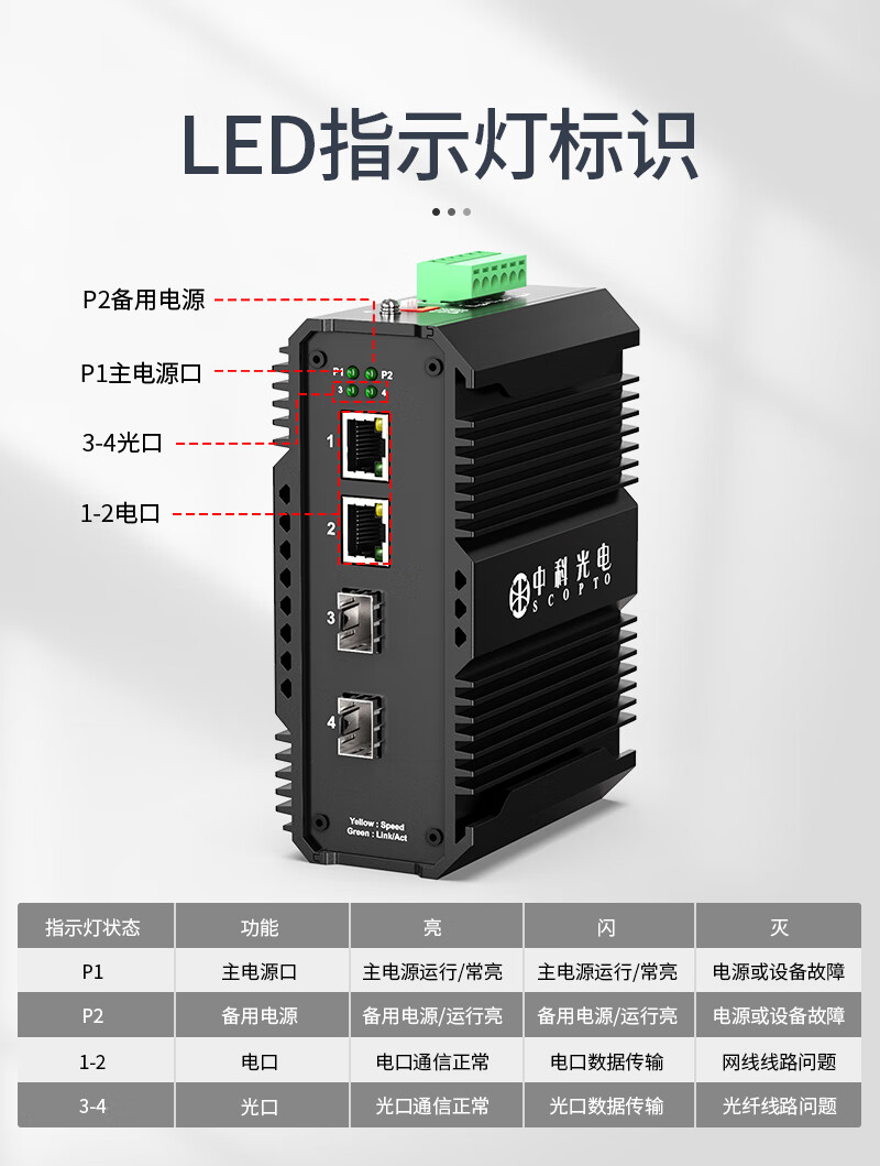 中科光電 工業(yè)級(jí)以太網(wǎng)光纖交換機(jī) 千兆2光2電口 光電轉(zhuǎn)換器12V導(dǎo)軌式1.25G光纖收發(fā)器