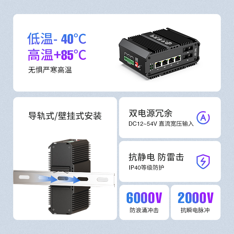 中科光電 工業(yè)級(jí)光纖收發(fā)器 千兆單模雙纖2光4電轉(zhuǎn)換器以太網(wǎng)交換機(jī)24V48V導(dǎo)軌式SC接口