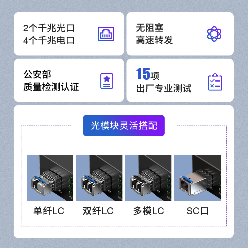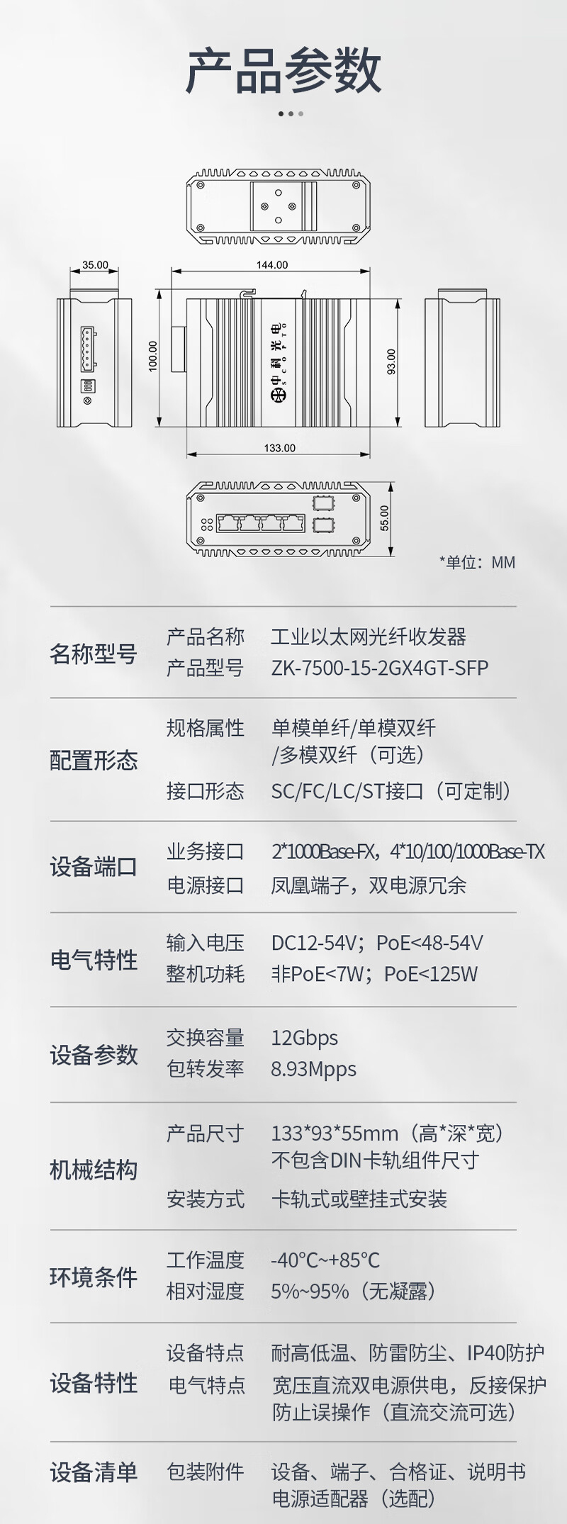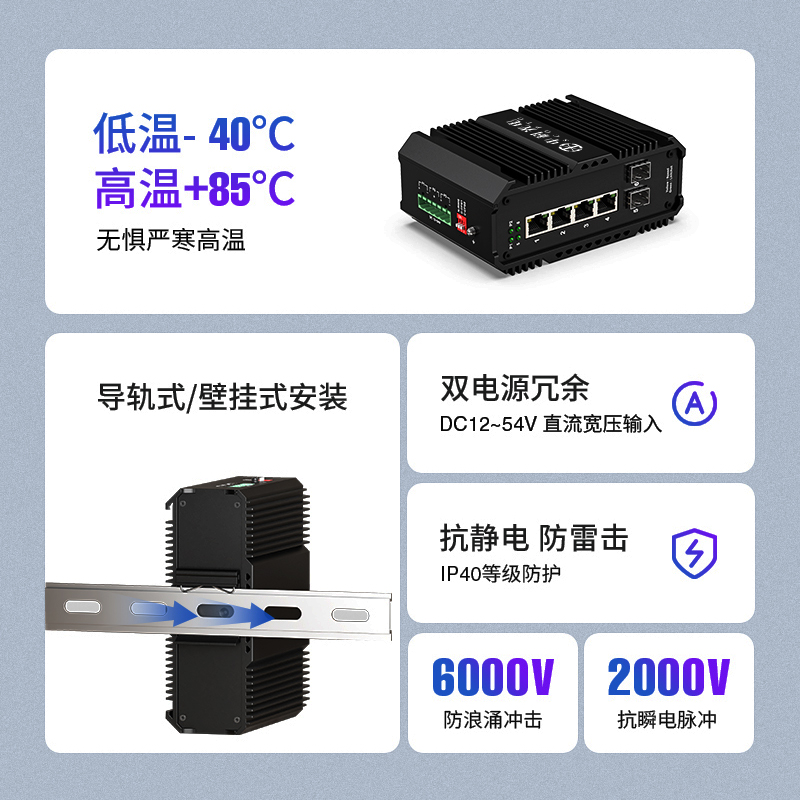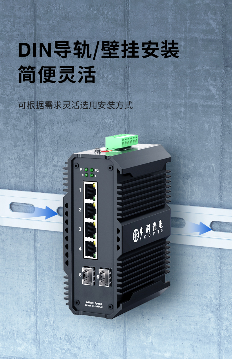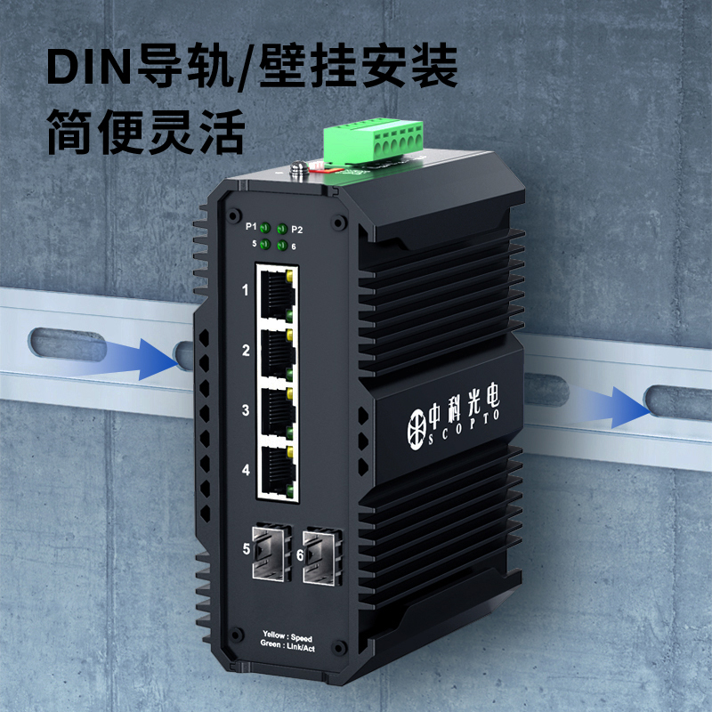 中科光電 工業(yè)級(jí)以太網(wǎng)光纖交換機(jī) 千兆2光4電口 光電轉(zhuǎn)換器12V導(dǎo)軌式1.25G光纖收發(fā)器