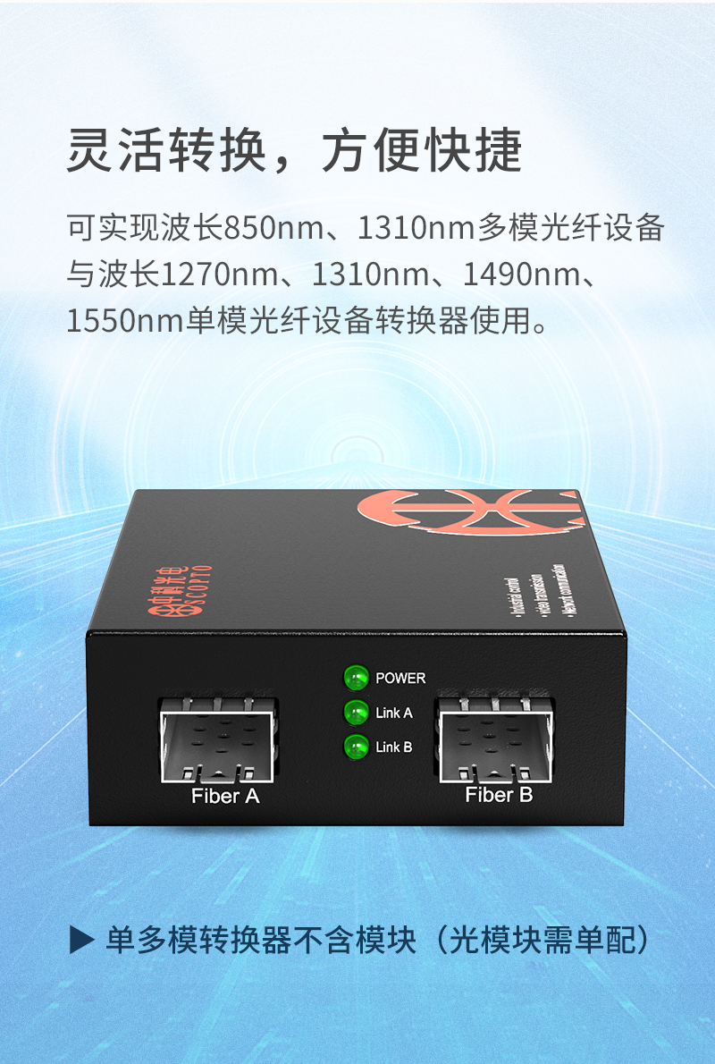 百兆單多模轉(zhuǎn)換器 SFP 不含模塊