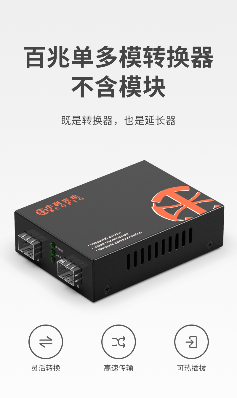 中科光電ZK-FE-S/M-SFP 百兆單多模轉(zhuǎn)換器 OEO光纖信號中繼模式放大器單模多模單纖雙纖延長器不含155M光模塊