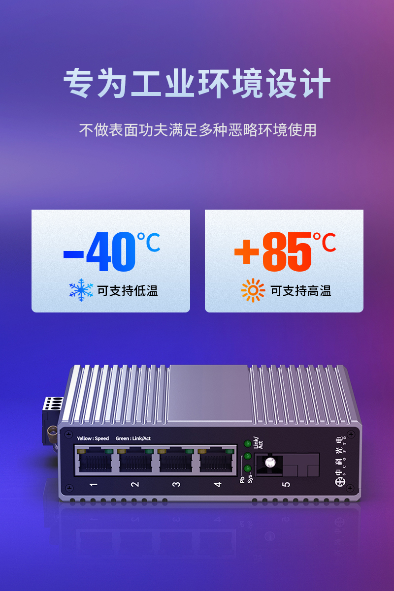 中科光電工業(yè)級(jí)光纖收發(fā)器千兆單模單纖1光4電導(dǎo)軌式光電轉(zhuǎn)換器12V以太網(wǎng)交換機(jī)