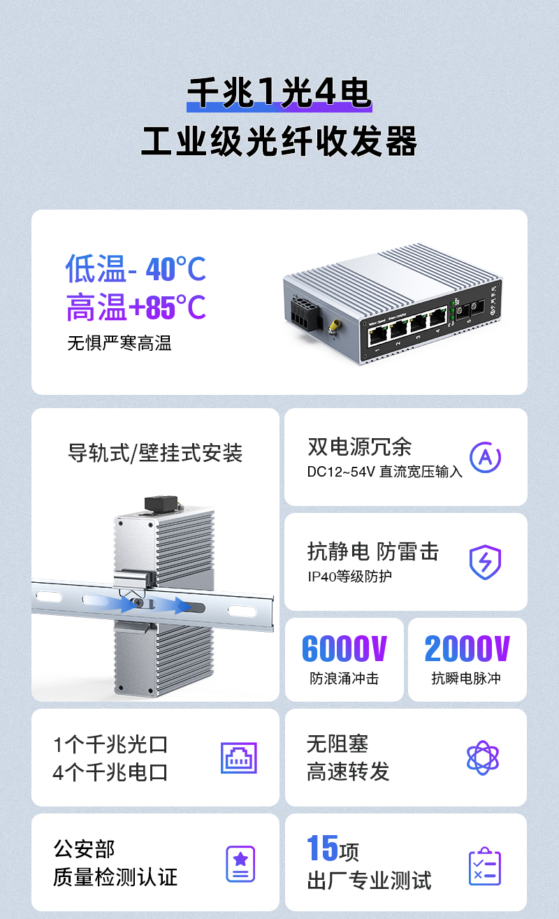 中科光電工業(yè)級光纖收發(fā)器千兆多模雙纖1光4電導(dǎo)軌式光電轉(zhuǎn)換器12V以太網(wǎng)交換機(jī)