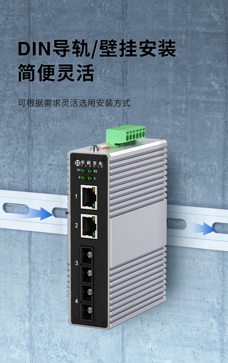 中科光電工業(yè)級(jí)光纖收發(fā)器千兆多模雙纖2光2電導(dǎo)軌式光電轉(zhuǎn)換器12V以太網(wǎng)交換機(jī)