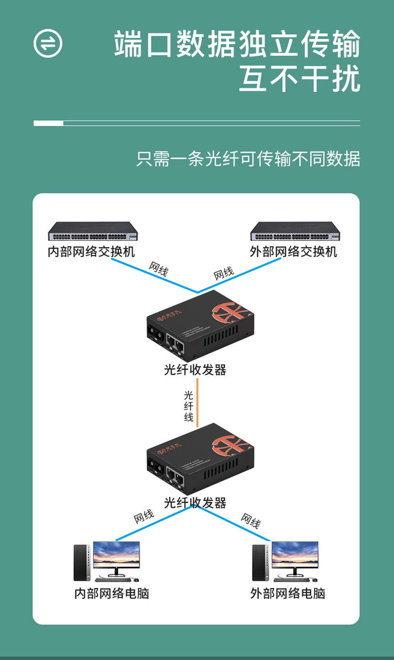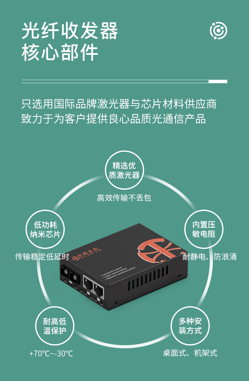 中科光電 百兆1光2電單模雙纖光纖收發(fā)器 光電轉(zhuǎn)換器 網(wǎng)絡(luò)端口VLAN隔離型SC接口 20~120KM可選