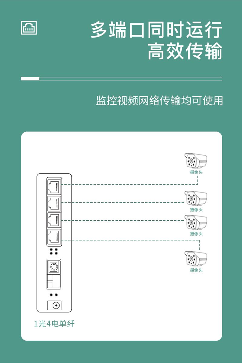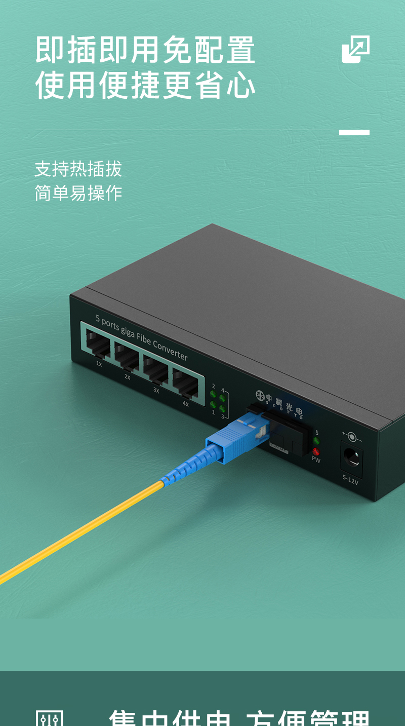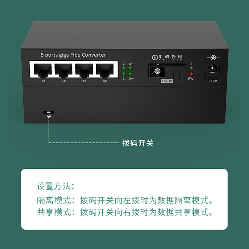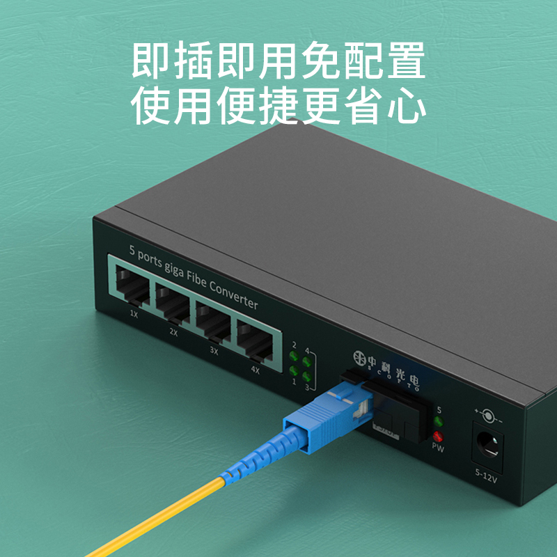 中科光電 百兆1光4電單模單纖光纖收發(fā)器 光電轉(zhuǎn)換器 網(wǎng)絡端口VLAN隔離型SC接口 20~120KM可選