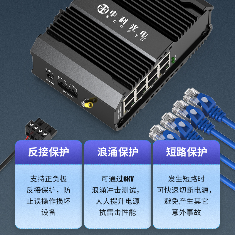 中科光電工業(yè)交換機 8口百兆工業(yè)交換機 8口百兆交換機 百兆8口工業(yè)級以太網(wǎng)交換機 導軌式 ZK-7500-10-8FT