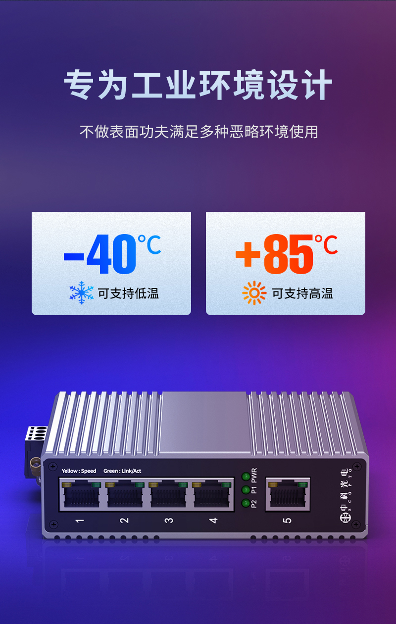 中科光電 工業(yè)級以太網(wǎng) 5口千兆交換機 企業(yè)/監(jiān)控網(wǎng)絡分流器分線器集線器交換器12V導軌式ZK-7000-10-5GE