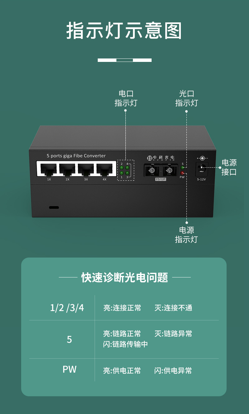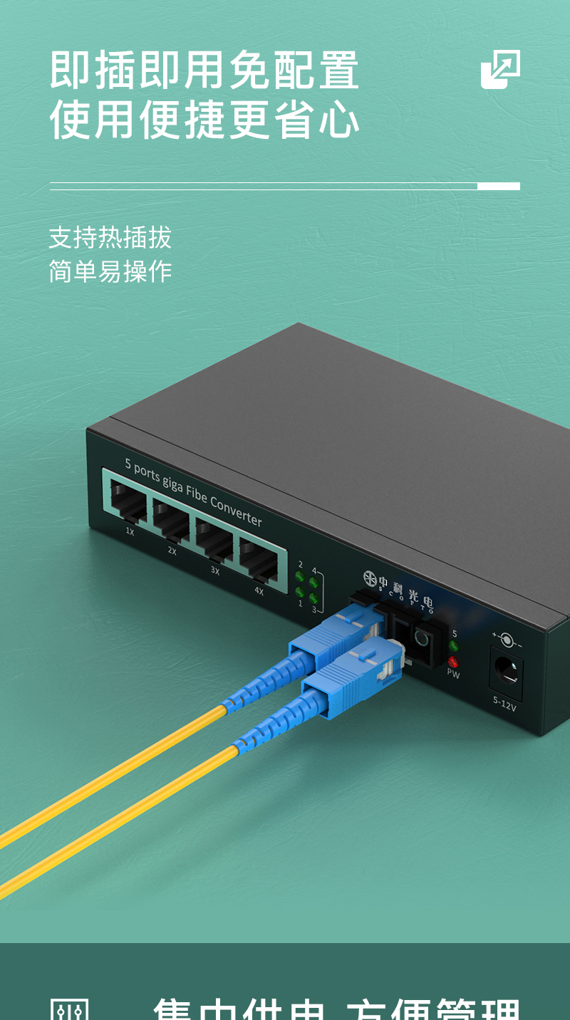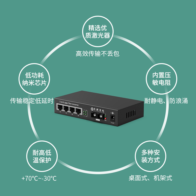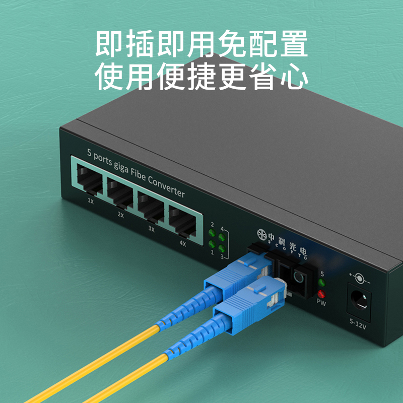 中科光電 千兆1光4電單模雙纖光纖收發(fā)器 光電轉(zhuǎn)換器 網(wǎng)絡(luò)端口VLAN隔離型SC接口 20-120KM可選