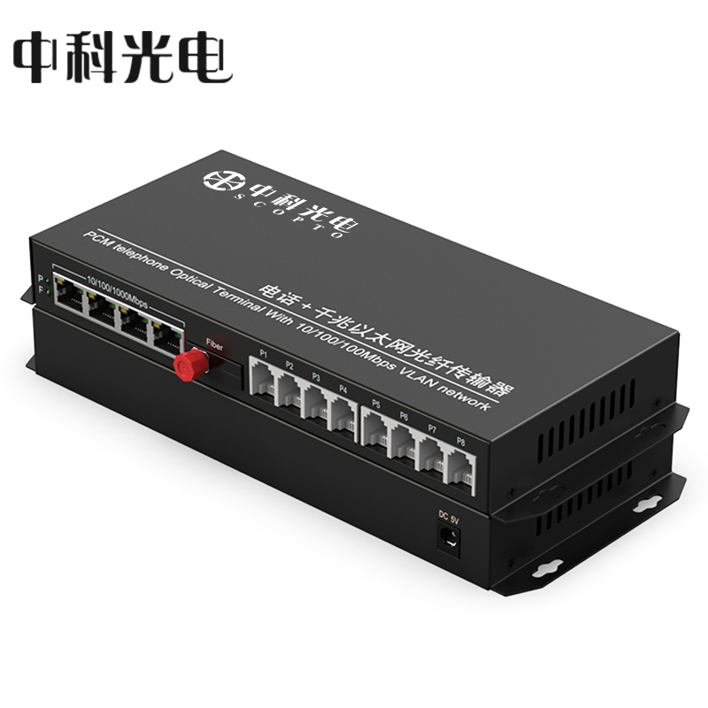 中科光電 電話光端機(jī)8路電話+4路千兆網(wǎng)絡(luò)隔離以太網(wǎng) PCM語(yǔ)音電話轉(zhuǎn)光纖收發(fā)器延長(zhǎng)器轉(zhuǎn)換器 ZK-8P4GV