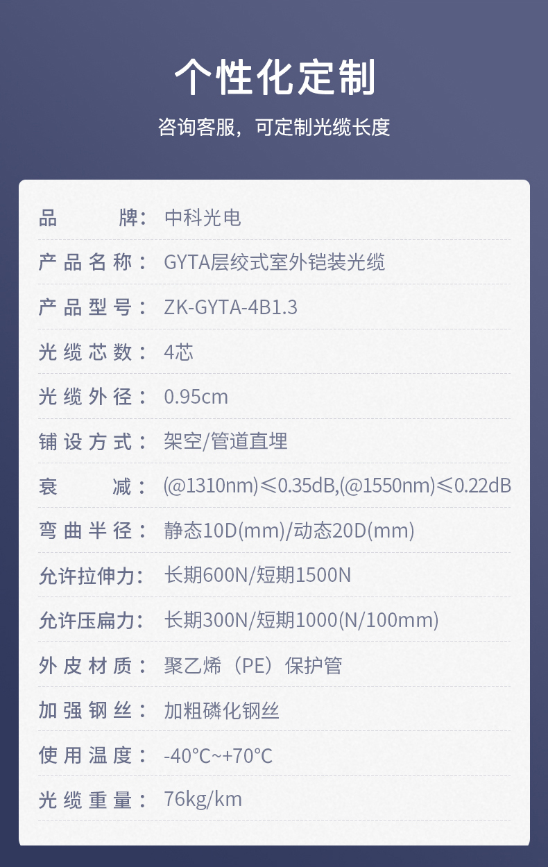 中科光電  鎧裝4芯單模室外光纜  GYTA層絞式室外架空/管道光纖線  可定制長度
