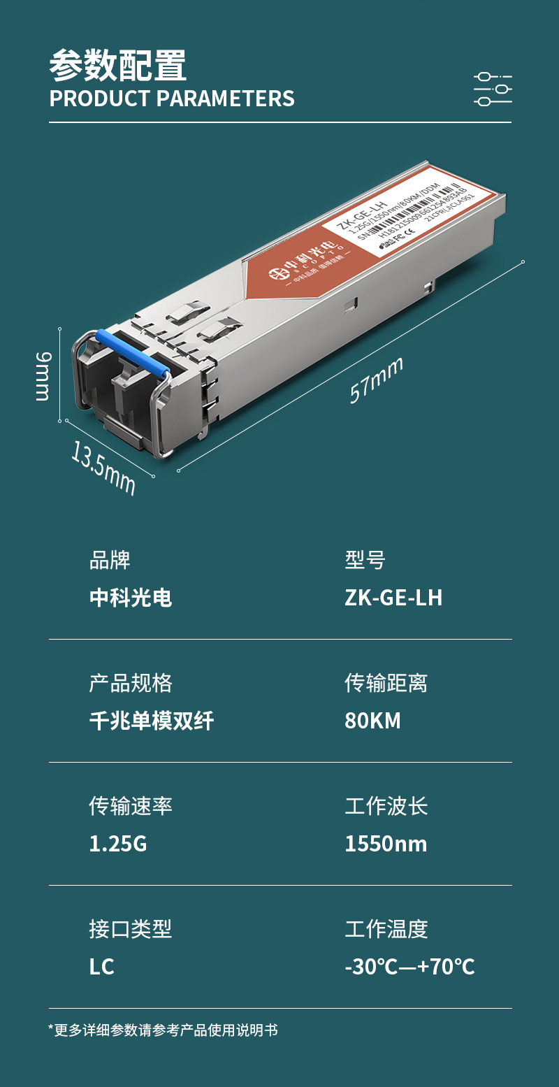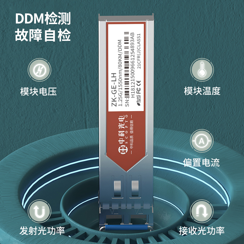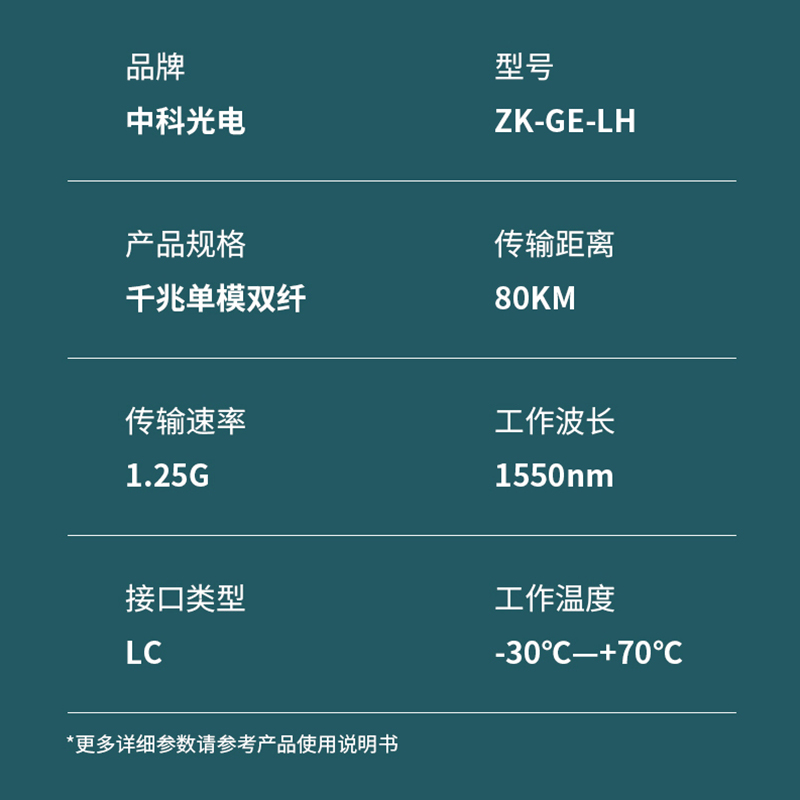 中科光電 千兆光模塊 SFP光纖模塊1.25G千兆單模雙纖120KM LC接口一只適用各品牌服務(wù)器交換機(jī)ZK-GE-LH(80KM)