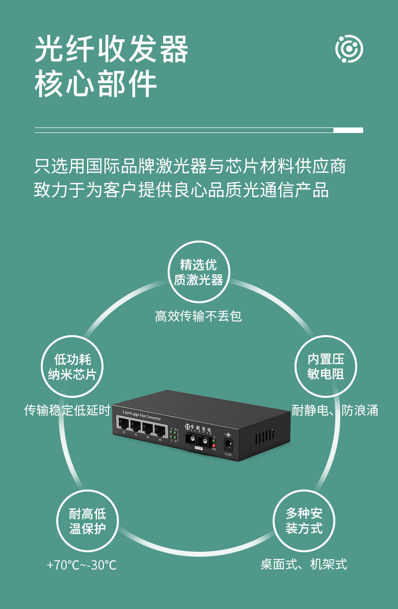 中科光電ZK-GE/104-550M 電信級 千兆1光4電 多模雙纖光纖收發(fā)器光電轉(zhuǎn)換器 SC接口 550米一臺