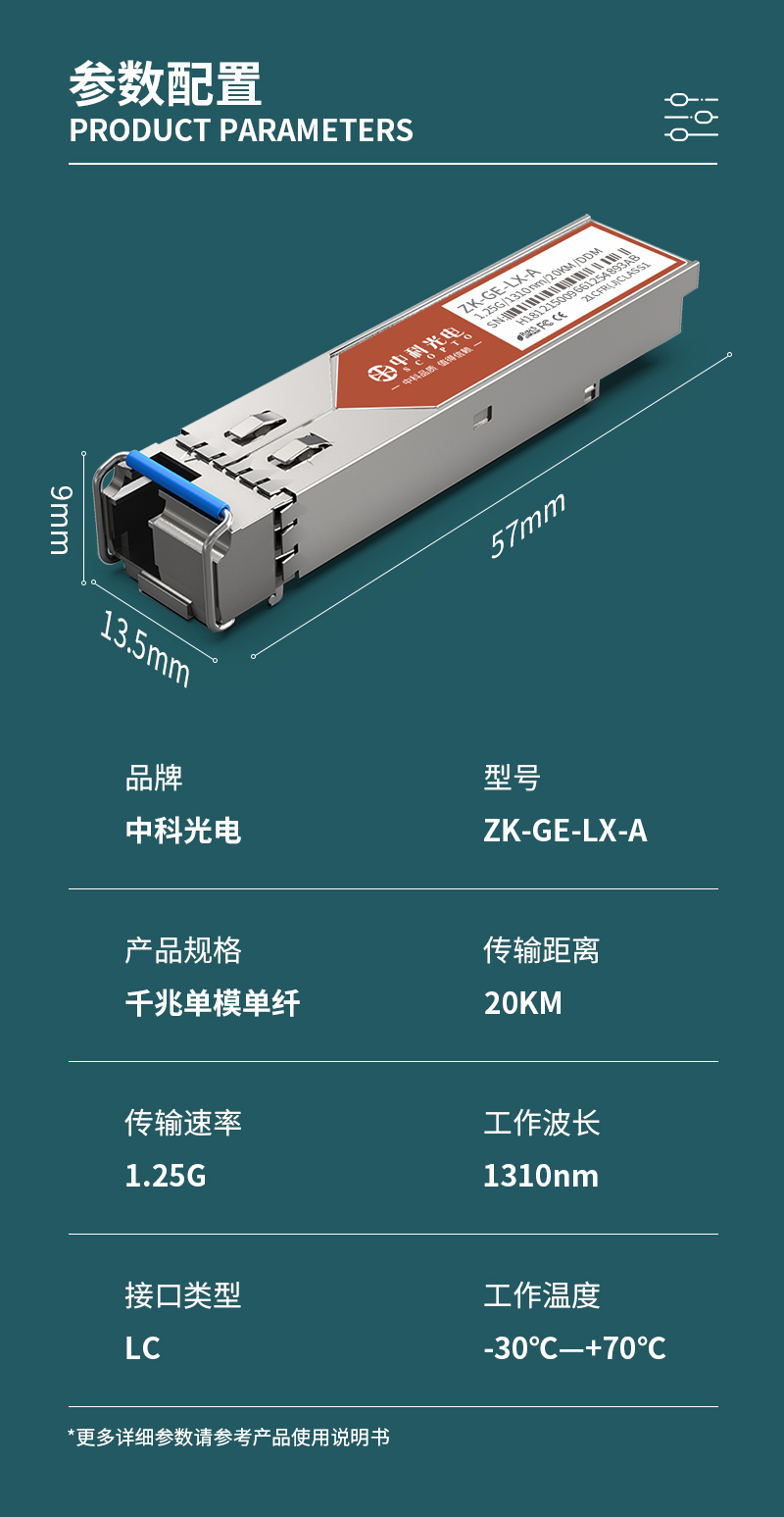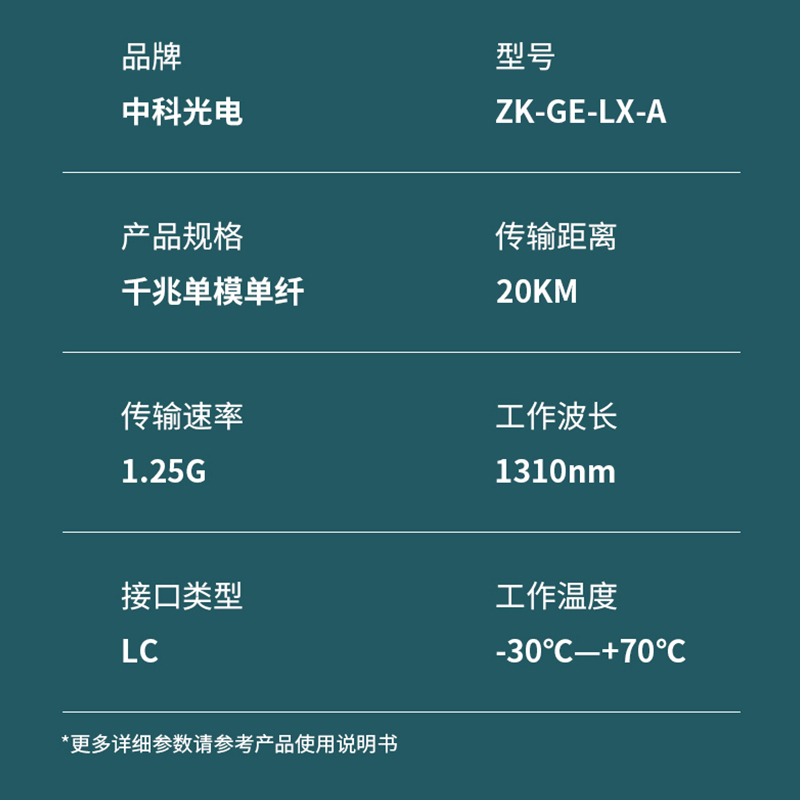 中科光電ZK-GE-LX-A 光模塊千兆1.25G單模單纖光纖模塊(1310nm,20km,LC)A端適配華為SFP-GE-LX-SM1310-BIDI
