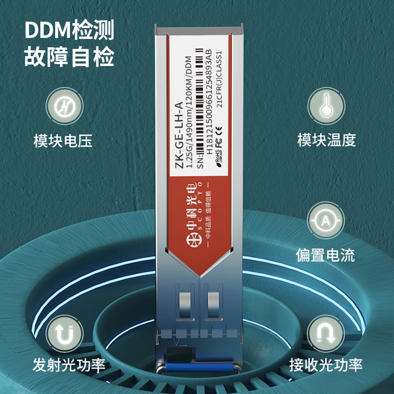 中科光電 千兆光模塊 SFP光模塊 1.25G單模光模塊 單模單纖 1490nm,120KM,LC接口一只A端ZK-GE-LH-A