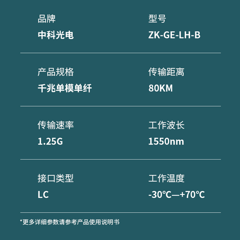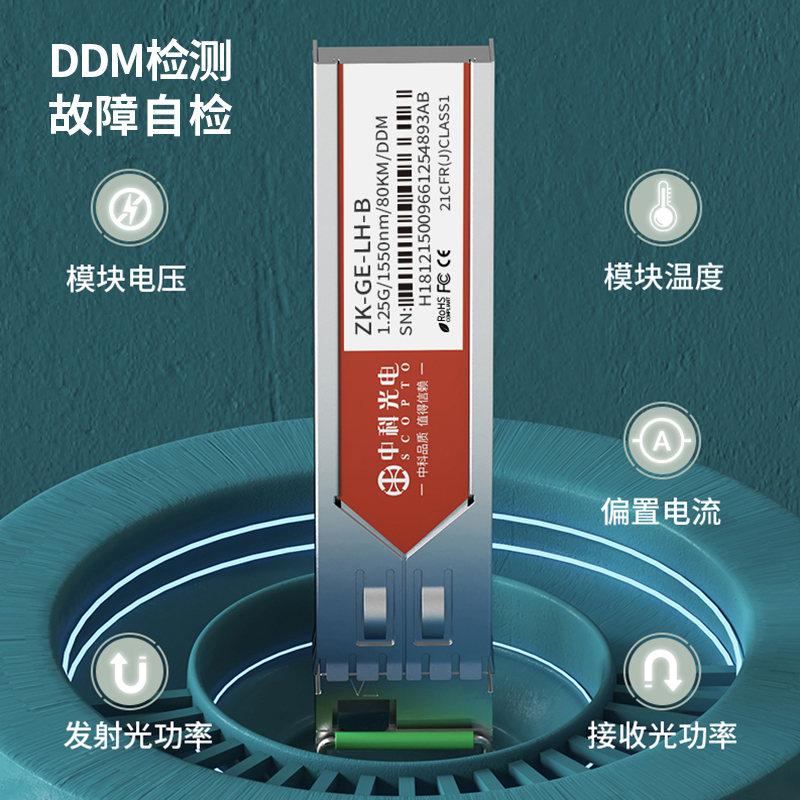 中科光電 千兆光模塊 SFP光模塊 1.25G單模光模塊 單模單纖 1550nm,80KM,LC接口一只B端ZK-GE-LH-B
