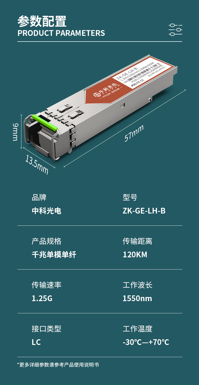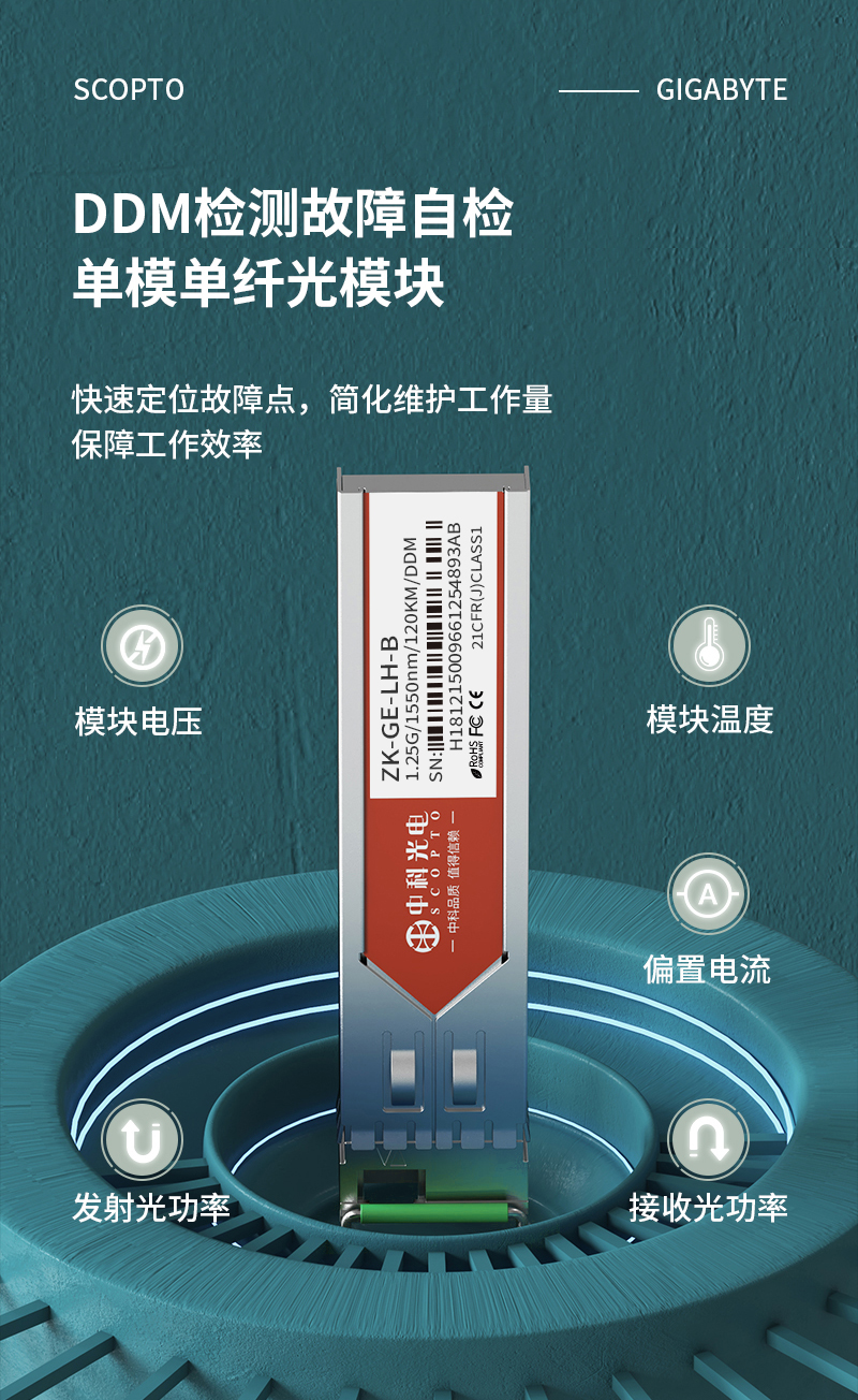中科光電 千兆光模塊 SFP光模塊 1.25G單模光模塊 單模單纖 1550nm,120KM,LC接口一只B端ZK-GE-LH-B