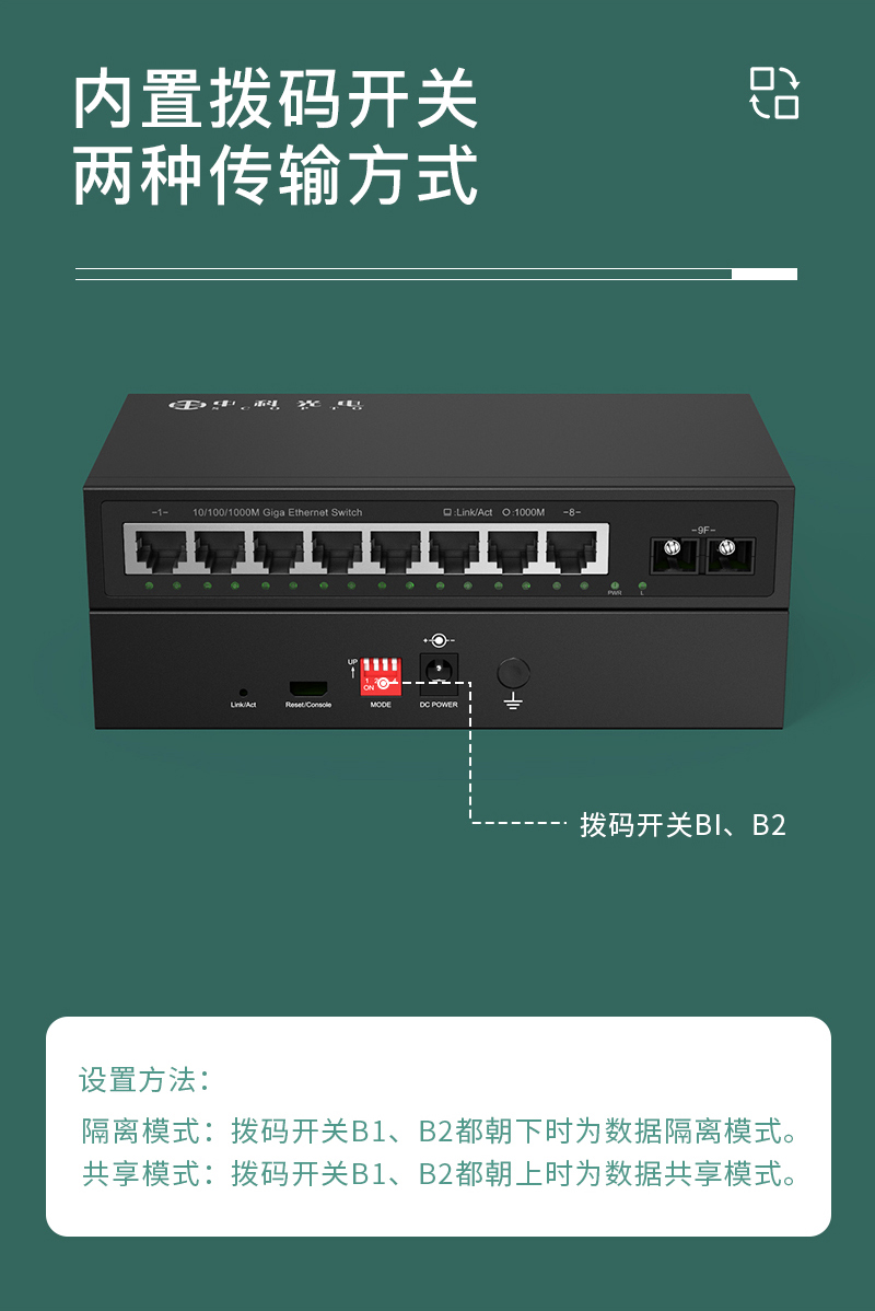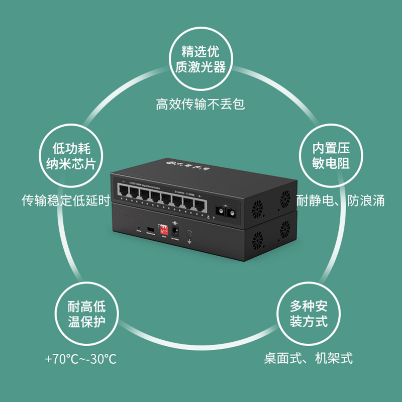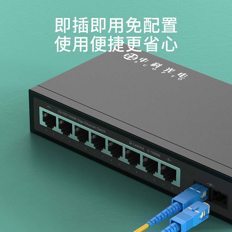 中科光電 千兆1光8電單模雙纖光纖收發(fā)器 光電轉(zhuǎn)換器 網(wǎng)絡(luò)端口VLAN隔離型SC接口 20~120KM可選