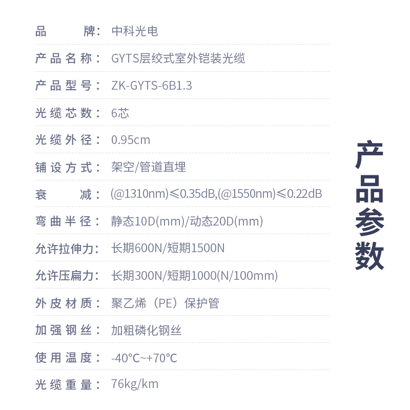 中科光電  鎧裝6芯單模室外光纜  GYTS層絞式室外架空/管道網線光纖線  可定制長度