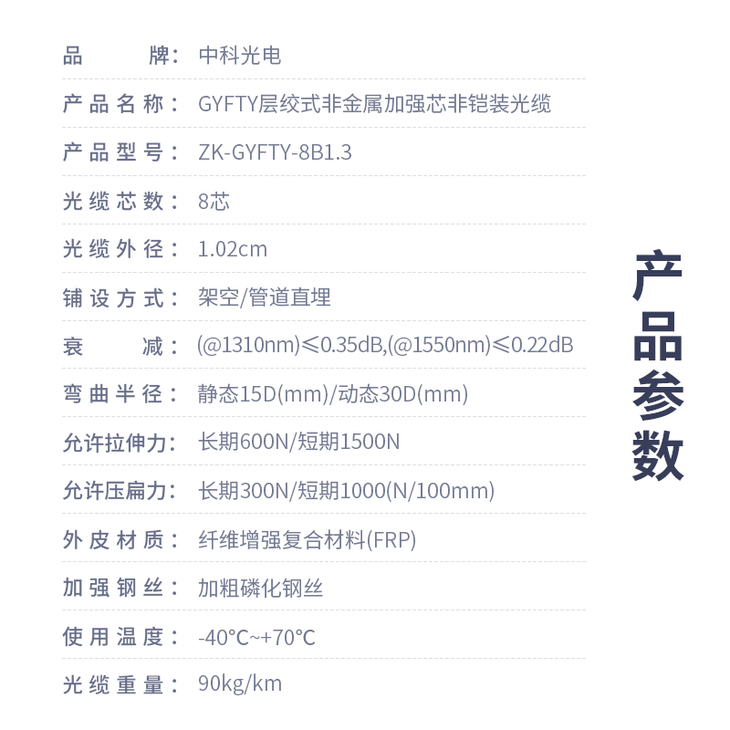 中科光電  8芯室外非金屬光纜 層絞式非鎧裝單模光纖線 管道光纜防強電擊穿  可定制長度