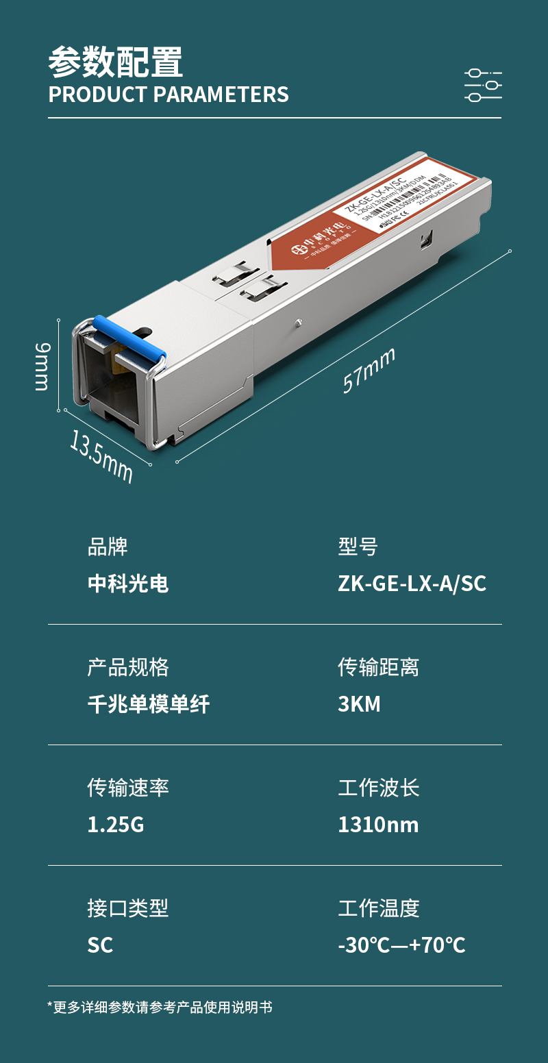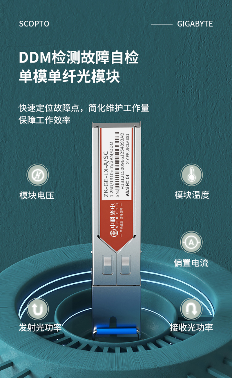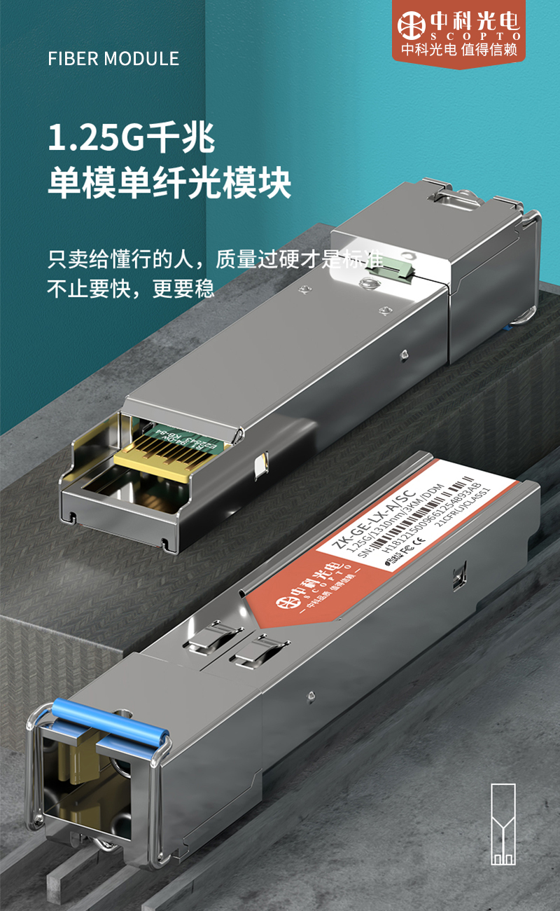 中科光電ZK-GE-LX-A/SC 光模塊千兆1.25G單模單纖光纖模塊(1310nm,3km,SC)A端
