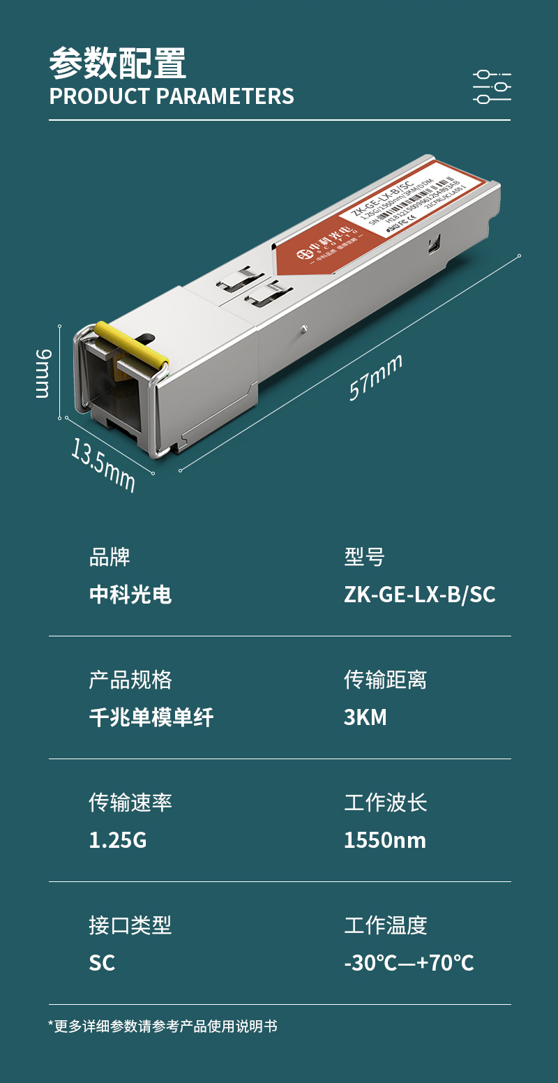 中科光電ZK-GE-LX-A/SC 光模塊千兆1.25G單模單纖光纖模塊(1310nm,3km,SC)B端
