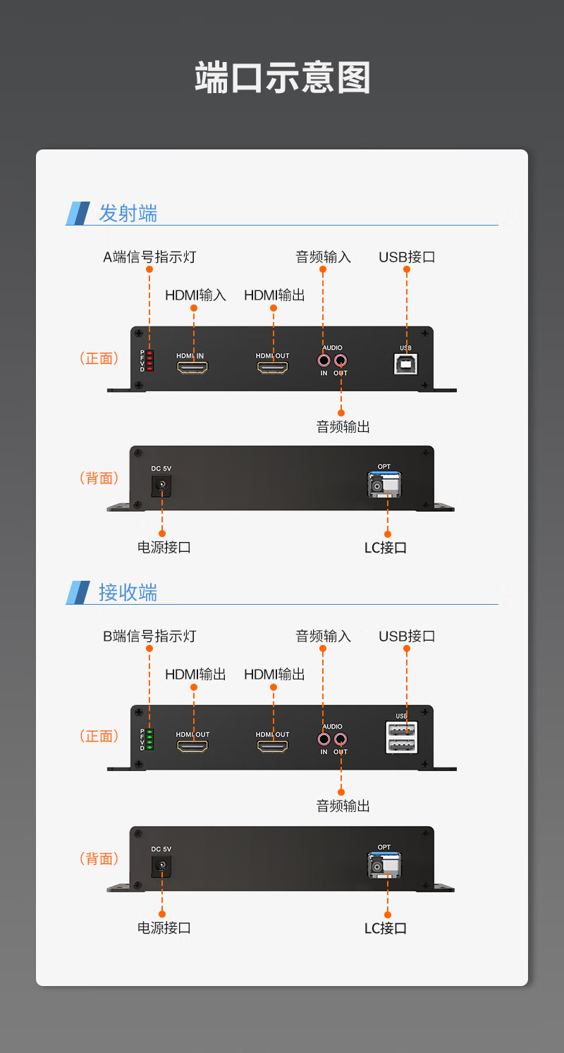 中科光電 非壓縮HDMI光端機 高清視頻HDMI+雙向音頻+環(huán)出+USB控制 HDMI轉光纖延長器收發(fā)器 LC口 ZK-HD-ARU