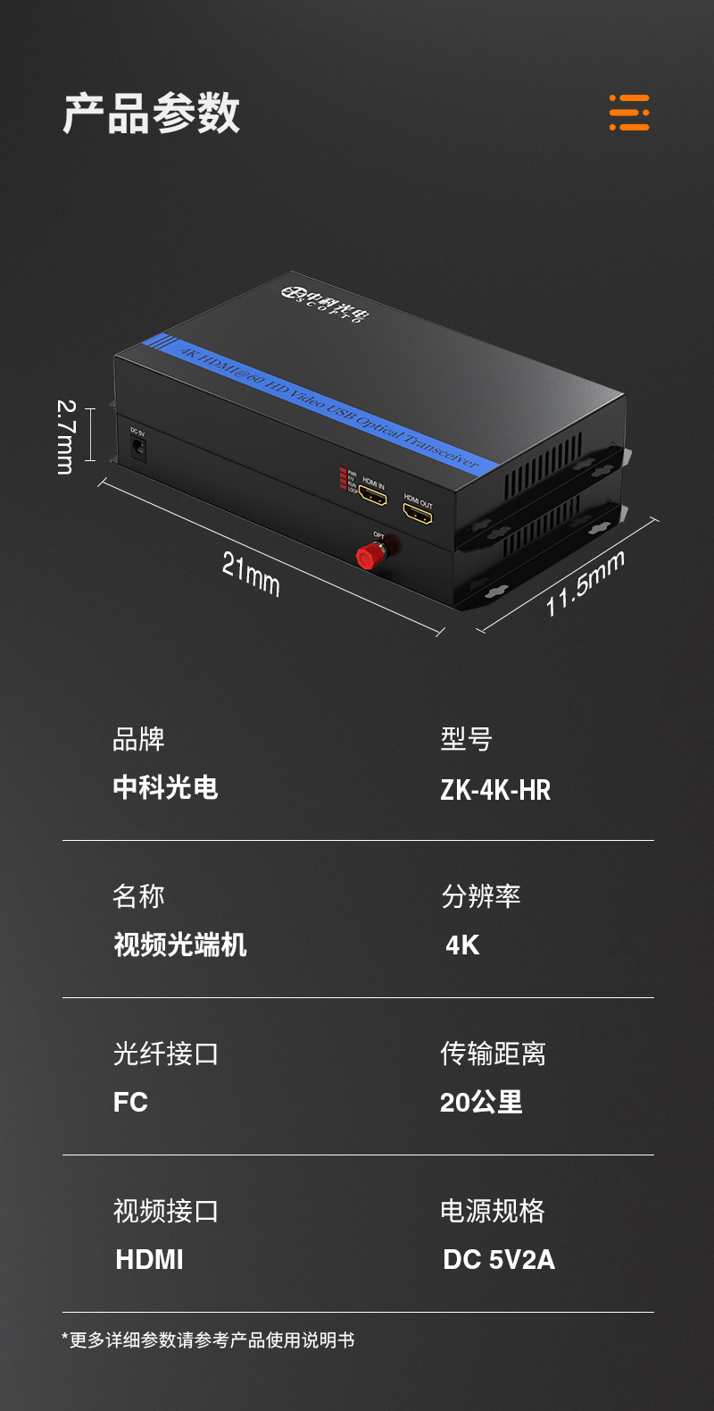 中科光電 非壓縮HDMI光端機(jī)4K 高清視頻HDMI+本地環(huán)出 HDMI轉(zhuǎn)光纖延長器收發(fā)器傳輸器轉(zhuǎn)換器 FC口 ZK-4K-HR