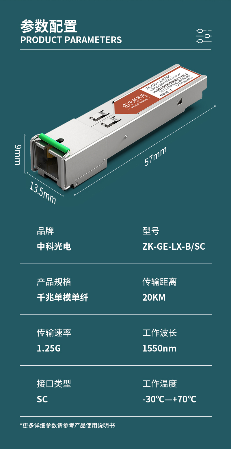 中科光電ZK-GE-LX-B/SC 光模塊千兆1.25G單模單纖光纖模塊(1550nm,20km,SC)B適配銳捷GE-SFP-LX-SM1550-BIDI