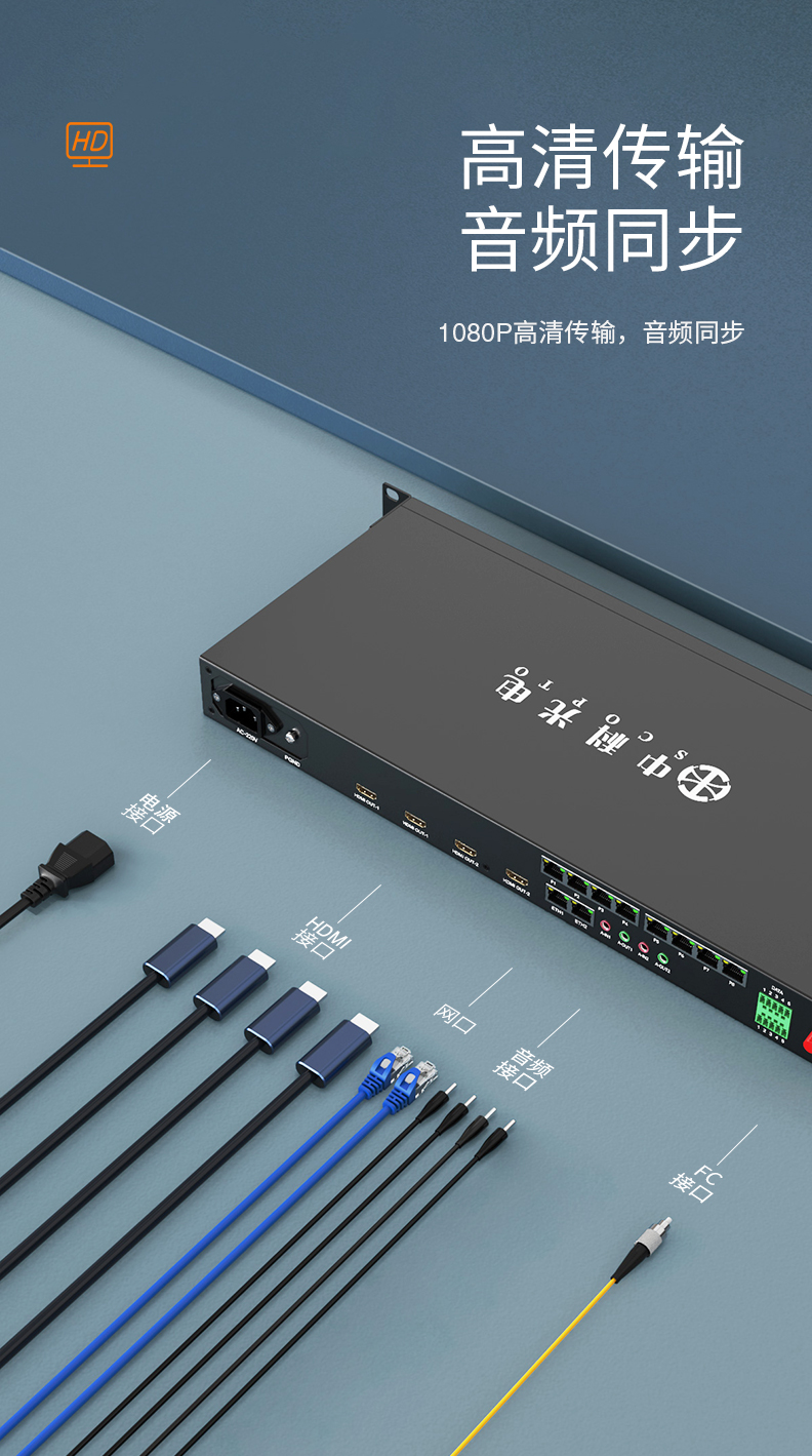 中科光電 全高清HDMI視頻光端機(jī) 2路雙向HDMI+2路雙向音頻+1路數(shù)據(jù)+2路千兆網(wǎng)絡(luò)+4路電話 ZK-2VAS-1R2GE4P