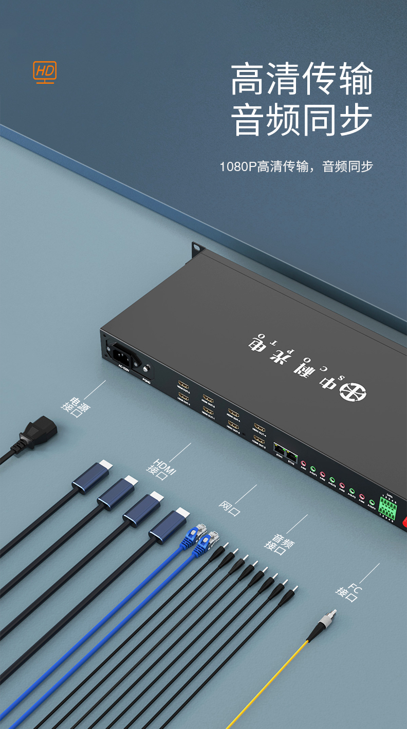 中科光電 HDMI視頻光端機(jī) HDMI轉(zhuǎn)光纖收發(fā)器 4路雙向HDMI+4路雙向音頻+1路數(shù)據(jù)+2路百兆網(wǎng)絡(luò) ZK-4VAS-1R2FE