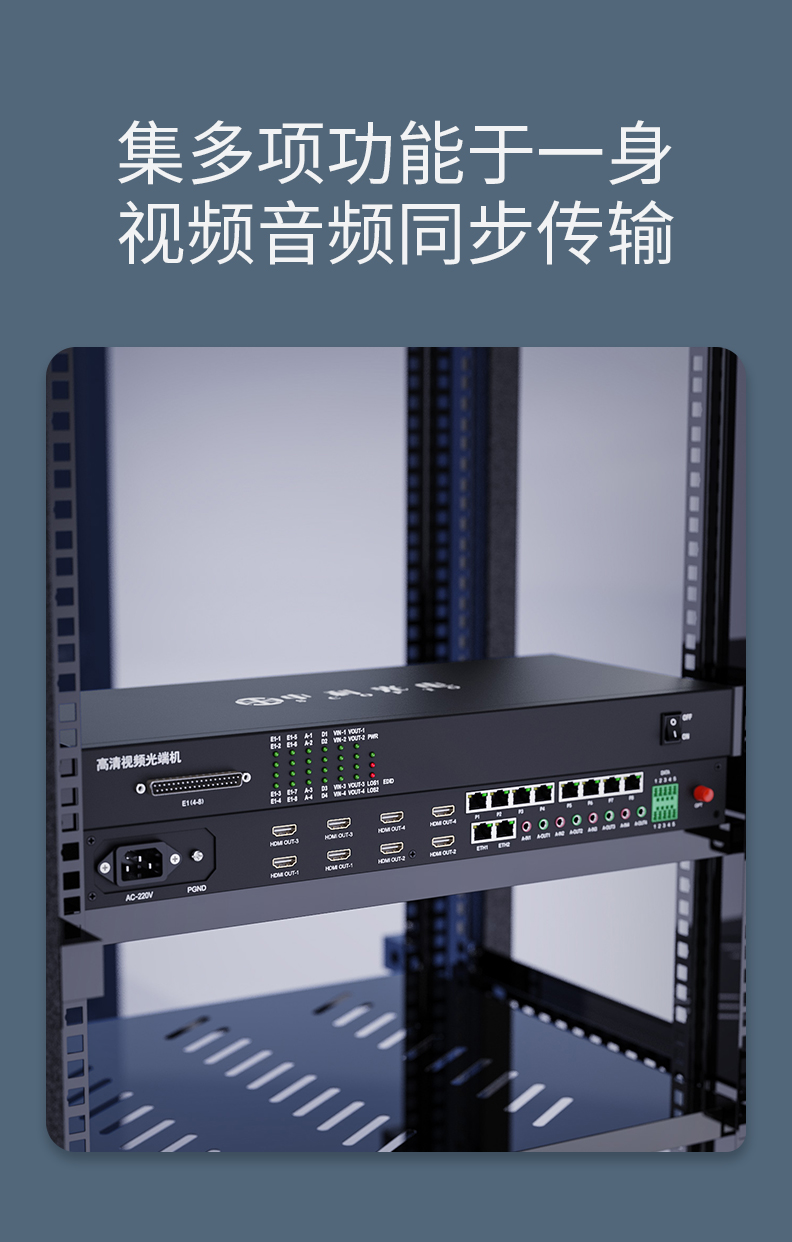 中科光電 HDMI視頻光端機(jī) 4路雙向HDMI+4路雙向音頻+1路數(shù)據(jù)+2路百兆網(wǎng)絡(luò)+4路電話+4E1 ZK-4VAS-1R2FE4P4E1