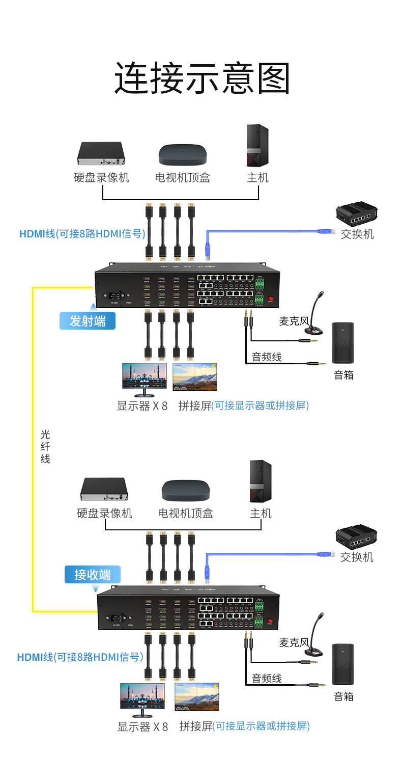 中科光電 HDMI視頻光端機(jī) 8路雙向HDMI+8路雙向音頻+1路數(shù)據(jù)+2路百兆網(wǎng)絡(luò)+4路電話+4E1 ZK-8VAS-1R2FE4P4E1