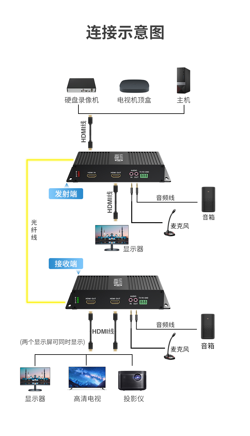 中科光電 非壓縮全高清HDMI視頻光端機 1路視頻+環(huán)出+雙向音頻+RS232光纖延長轉換器FC接口 ZK-HDMI/F-RAS