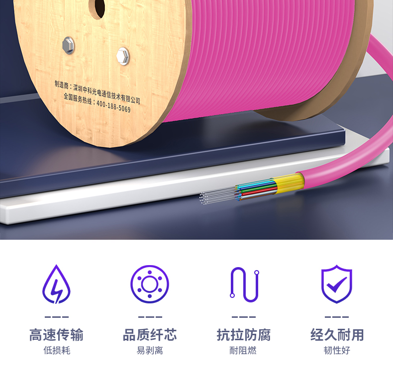中科光電  24芯OM4萬(wàn)兆多模室內(nèi)網(wǎng)線光纖線 GJFJV束狀軟光纜  可定制長(zhǎng)度