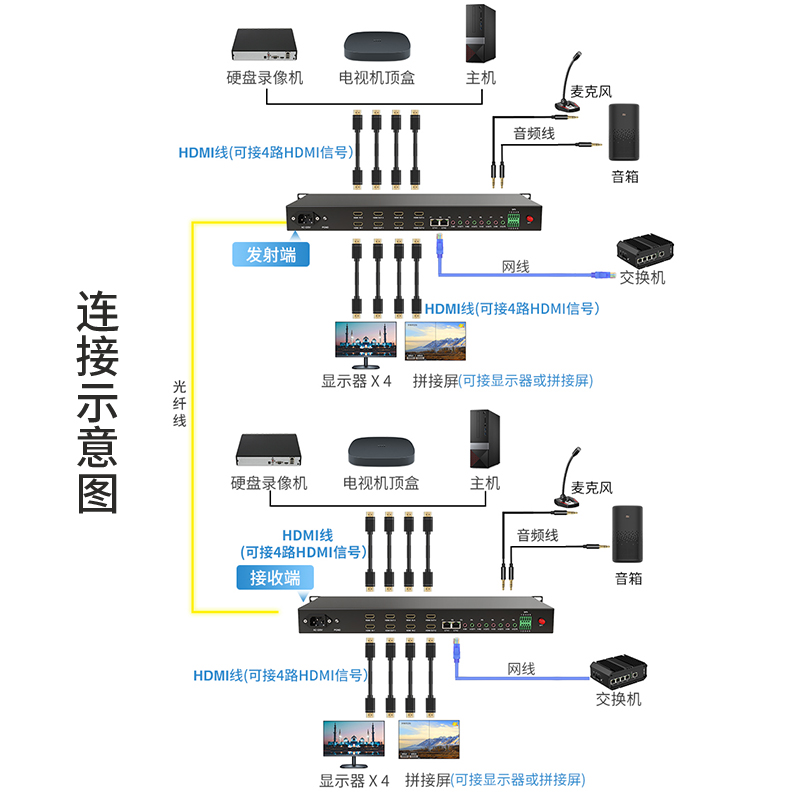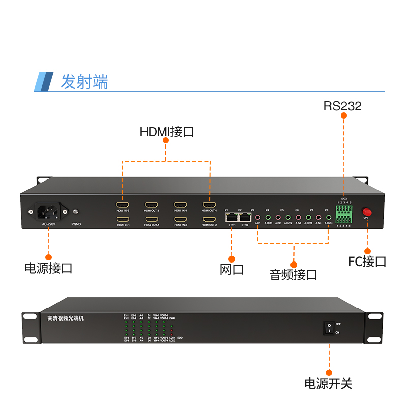 中科光電 4路HDMI高清光端機(jī) 4路HDMI雙向視頻+雙向音頻+1路網(wǎng)絡(luò) 光纖延長轉(zhuǎn)換收發(fā)器ZK-HDMI/4L4H4A1FE