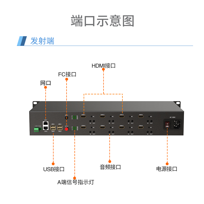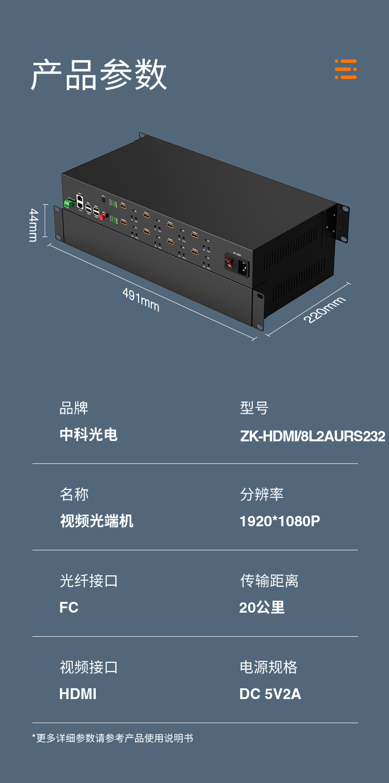 中科光電 8路HDMI高清光端機 8路HDMI視頻+雙向音頻+USB控制+RS232光纖延長轉(zhuǎn)換收發(fā)器ZK-HDMI/8L2AURS232