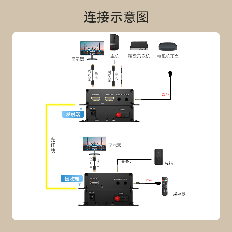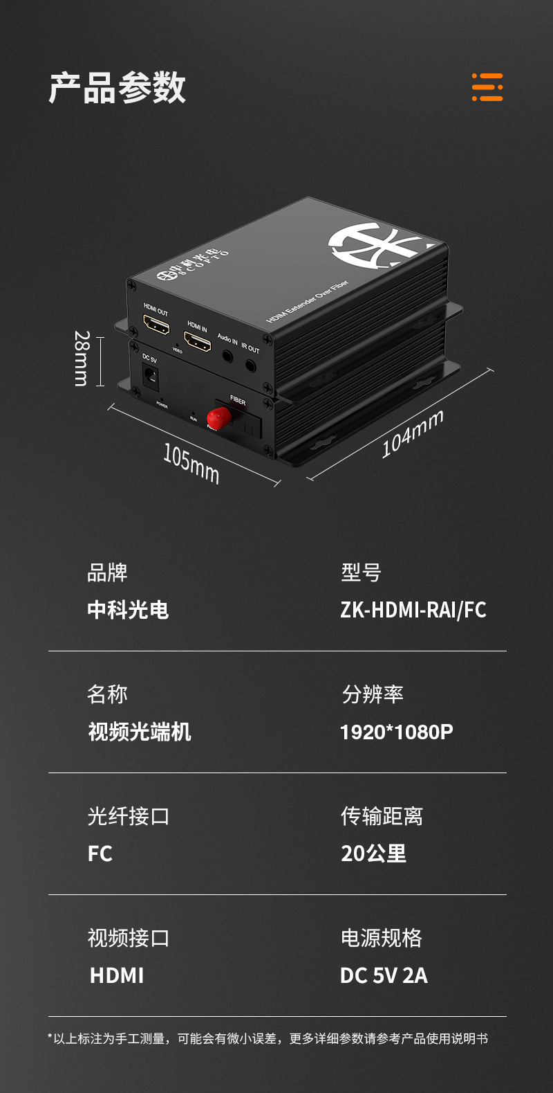 中科光電 高清HDMI光端機(jī)帶1路3.5正向音頻帶本地環(huán)出視頻光纖延長(zhǎng)器無(wú)損傳輸收發(fā)器FC接口ZK-HDMI-RAI/FC
