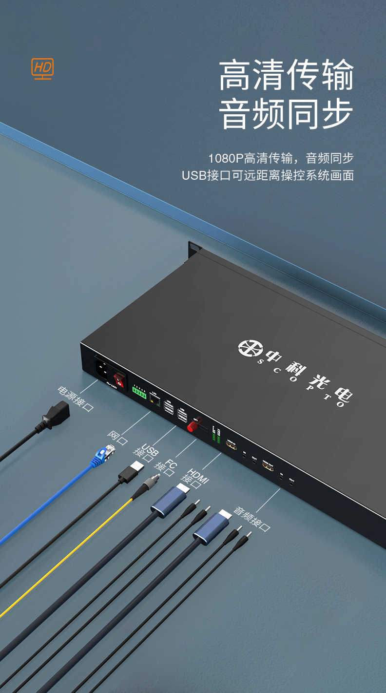 中科光電 高清2路HDMI視頻光端機(jī)2路單向+2路雙向音頻+1路USB+1路百兆網(wǎng)絡(luò)光纖延長器傳輸收發(fā)器ZK-O2H2A1U1F