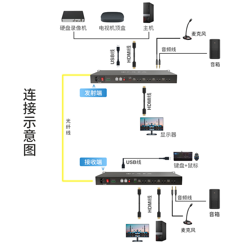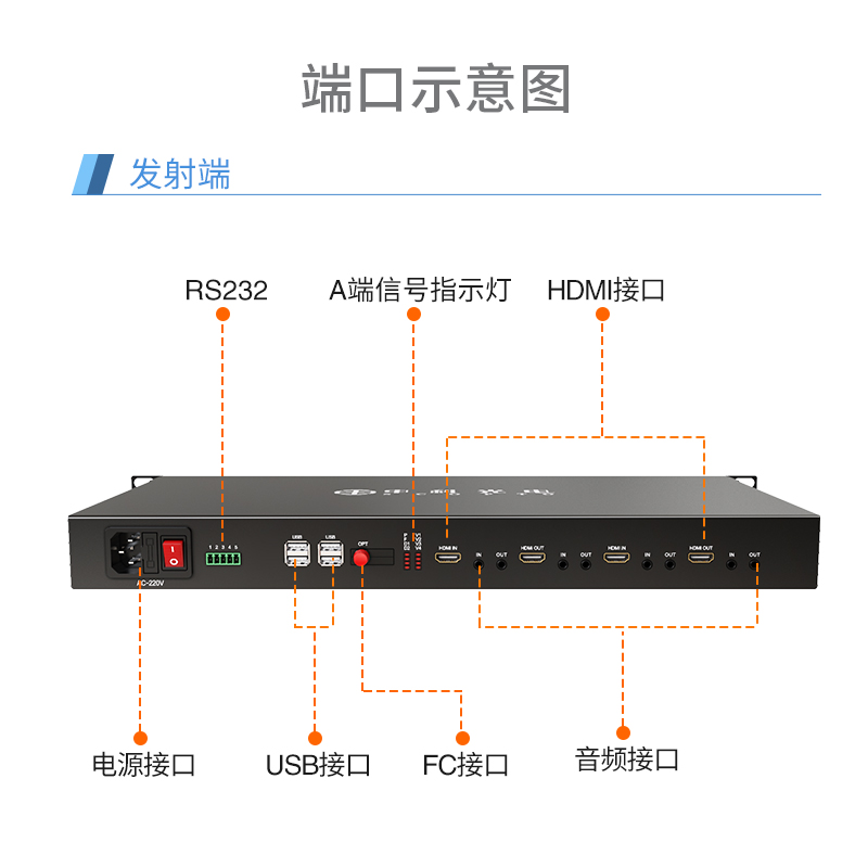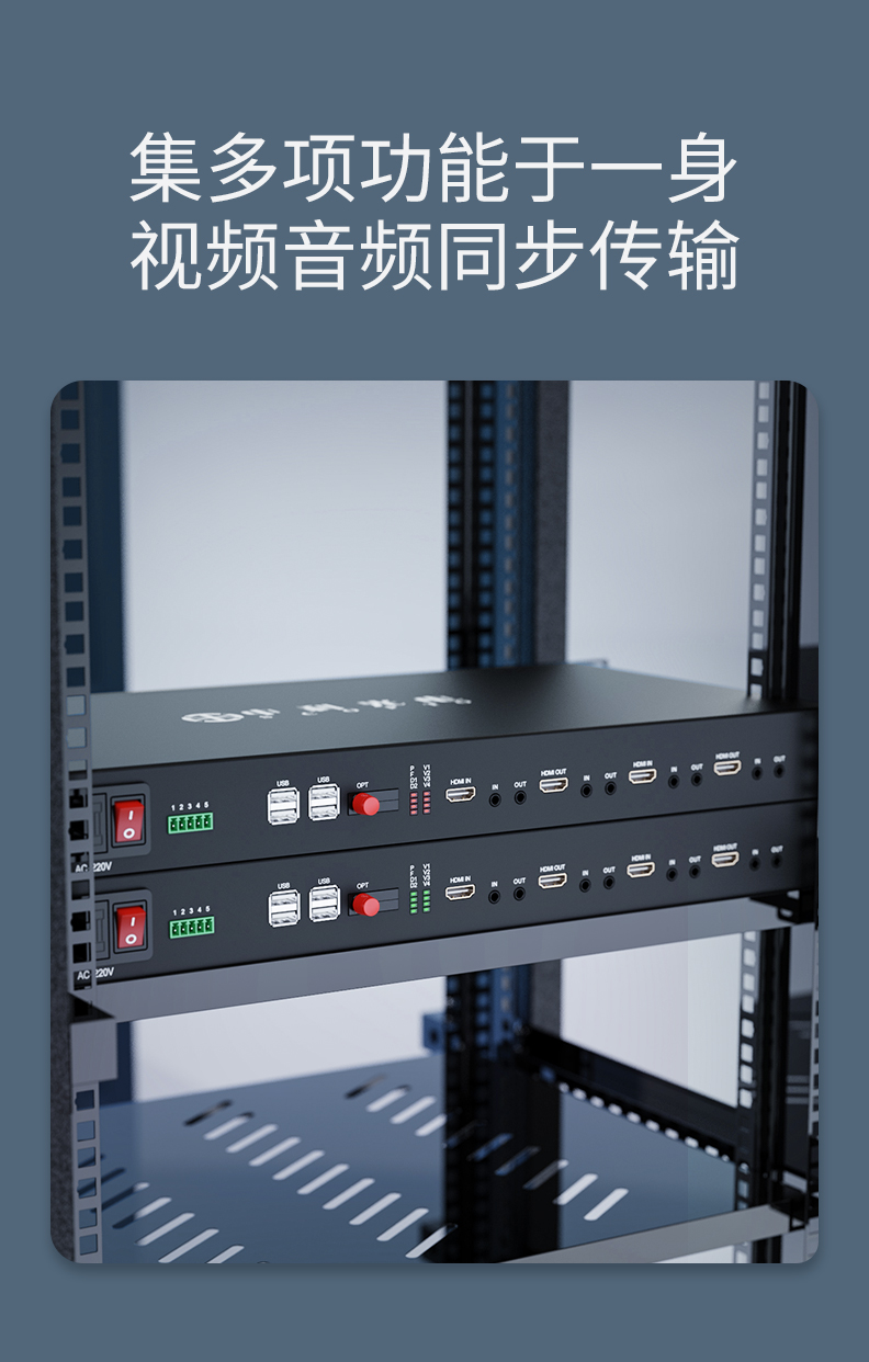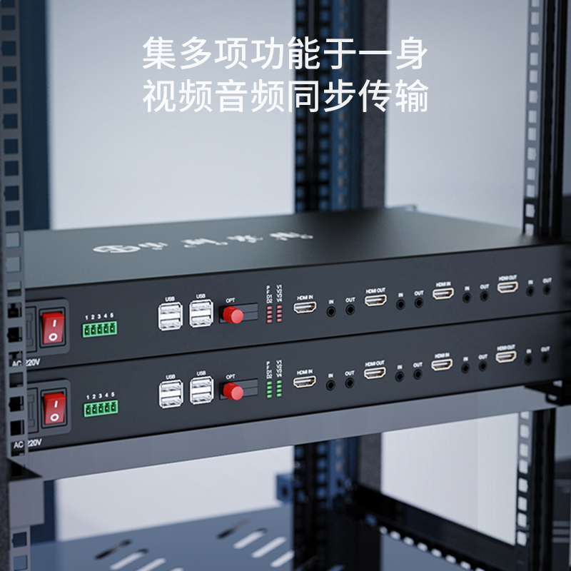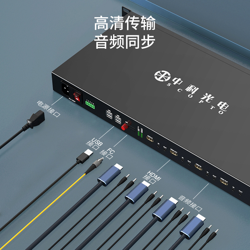 中科光電 KVM視頻光端機2路HDMI視頻+2路本地環(huán)出+獨立雙向音頻+1路RS232+1路USB 光纖延長器 ZK-O2H2R2A1US
